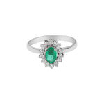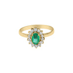 Natural Oval Cut Emerald Gemstone and Diamond 18k Yellow Gold Antique Ring For Womens