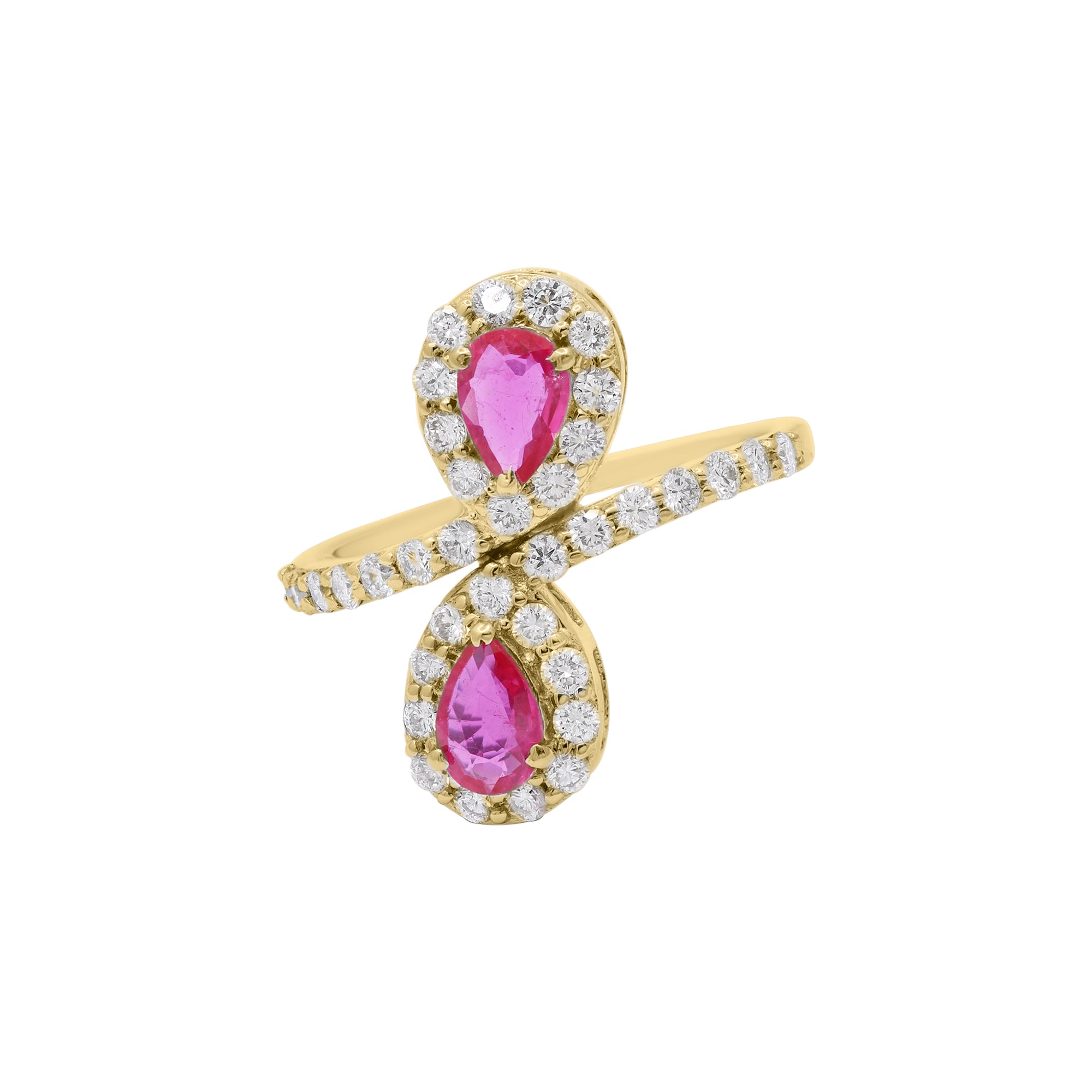Handmde Natural Pear Cut Ruby Gemstone & Diamond 18k White Gold Designer Ring Gift For Her