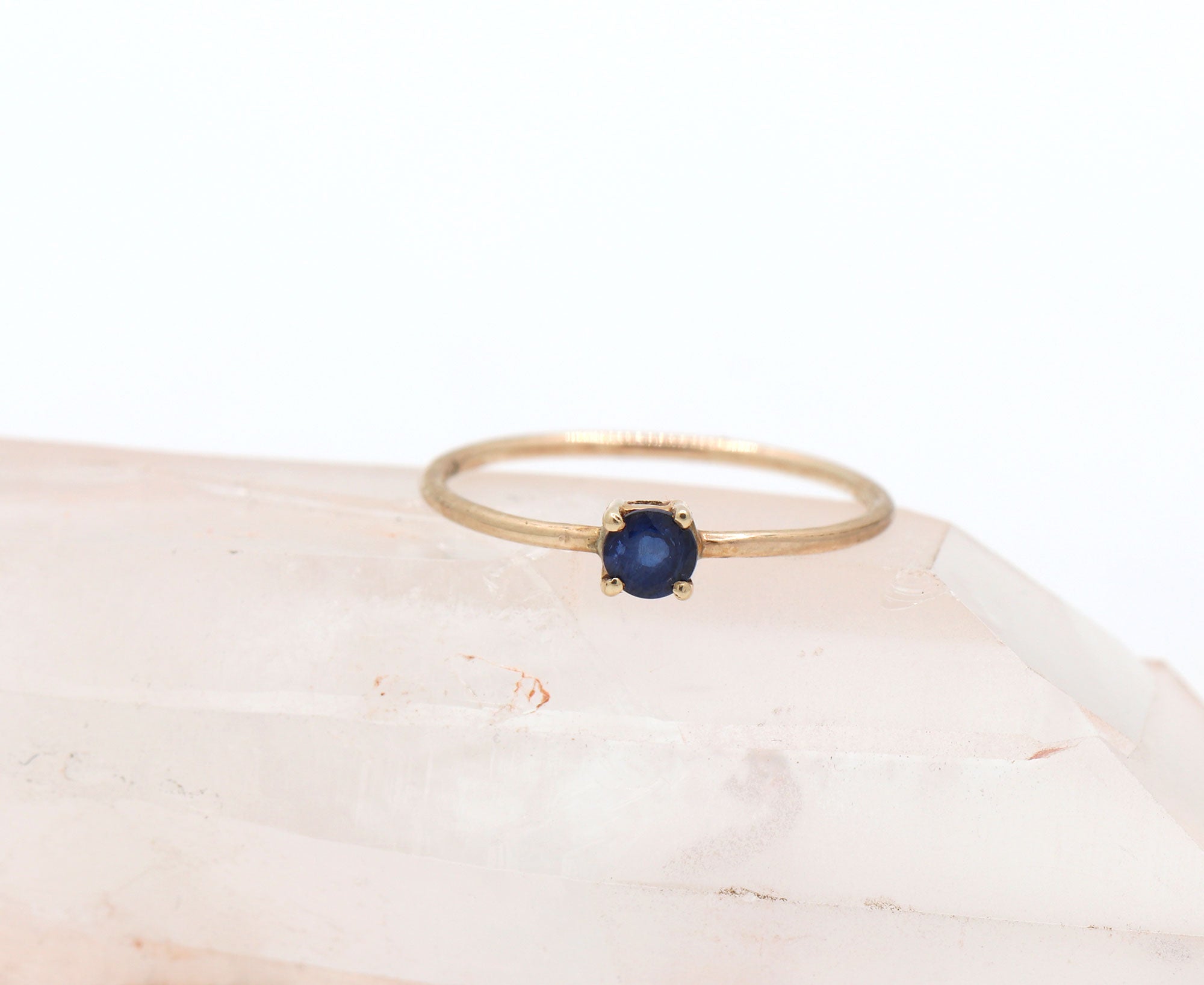 Round Shaped Blue Sapphire Gemstone 9k Gold Ring