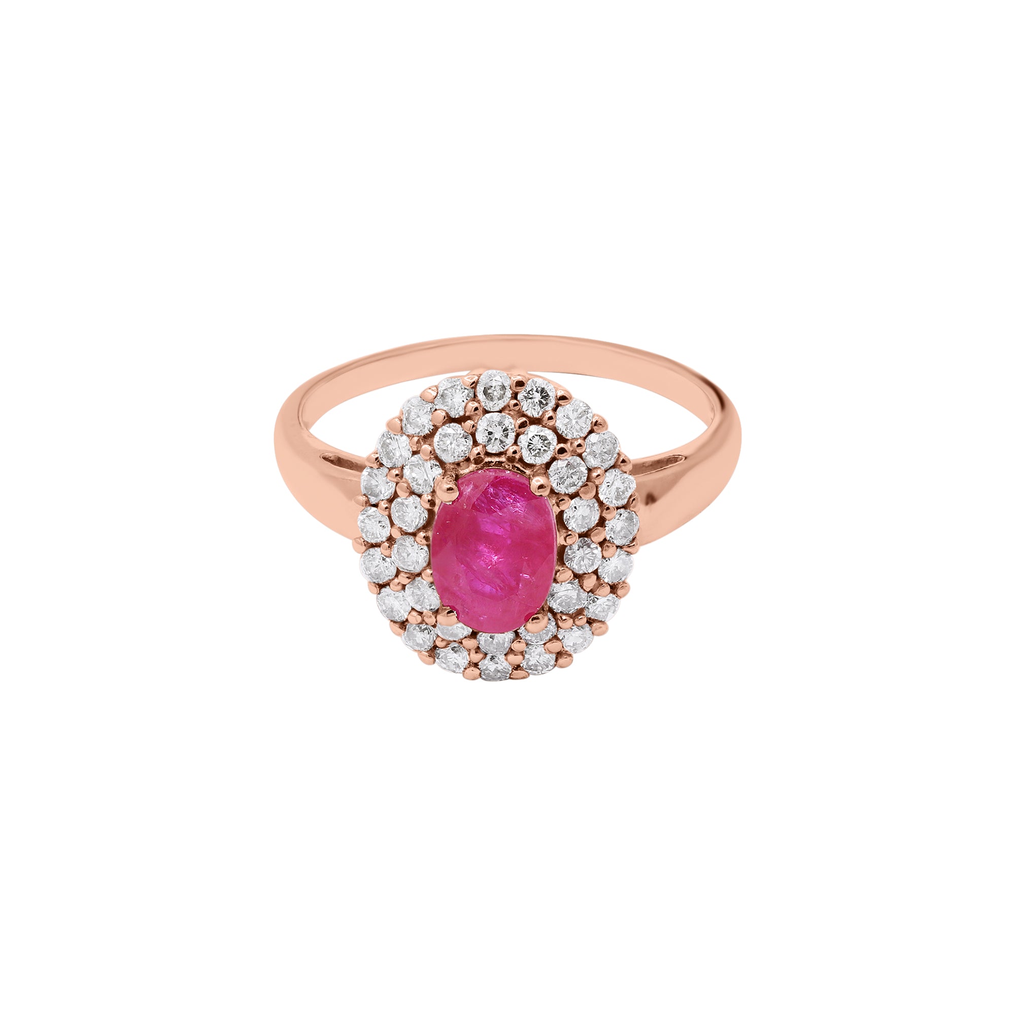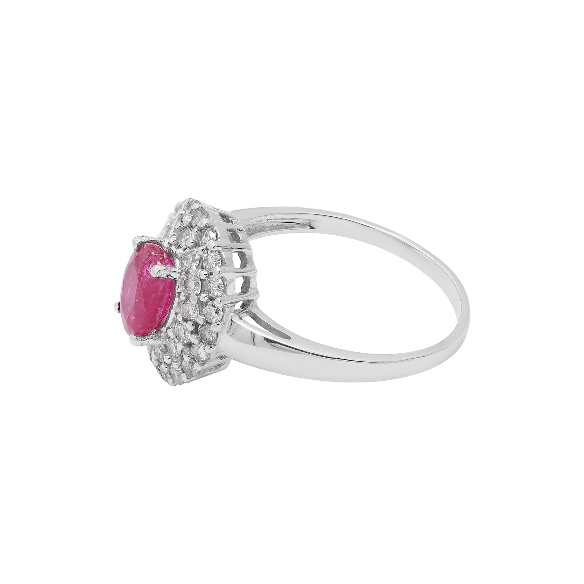 Handmade Natural Ruby Gemstone With Diamond 14k White Gold Designer Oval Shaped Ring