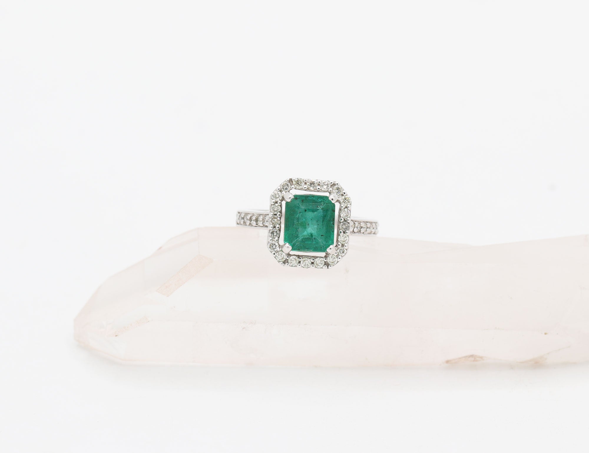 Precious Square Shaped Emerald Gemstone With Diamond 14K Gold Ring