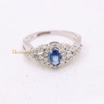 Buy Best Quality Certified Designer Natural Blue Sapphire Oval Shaped Faceted Cut Spiritual Chakra Healing Gemstone With Diamond Ring In 14k White Gold