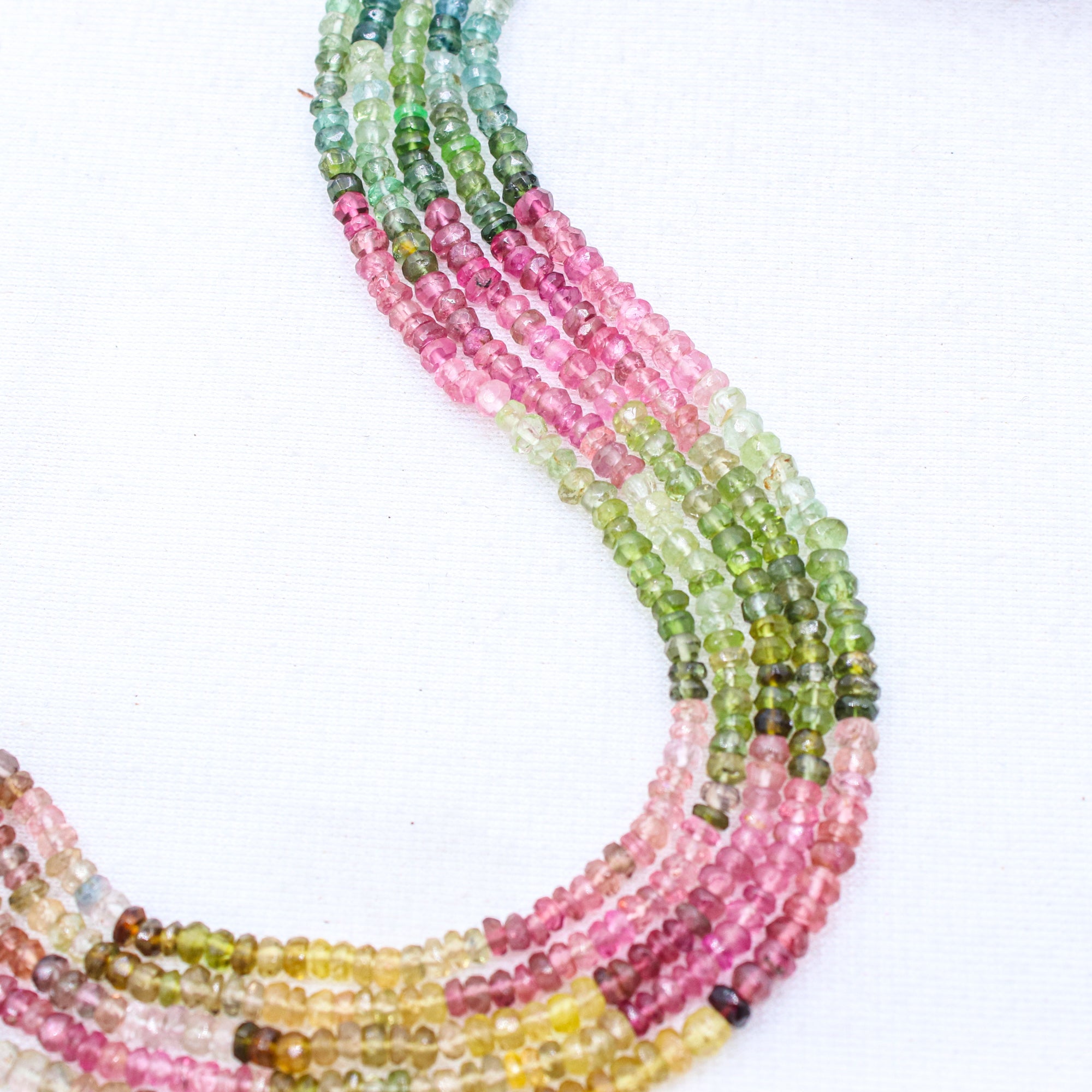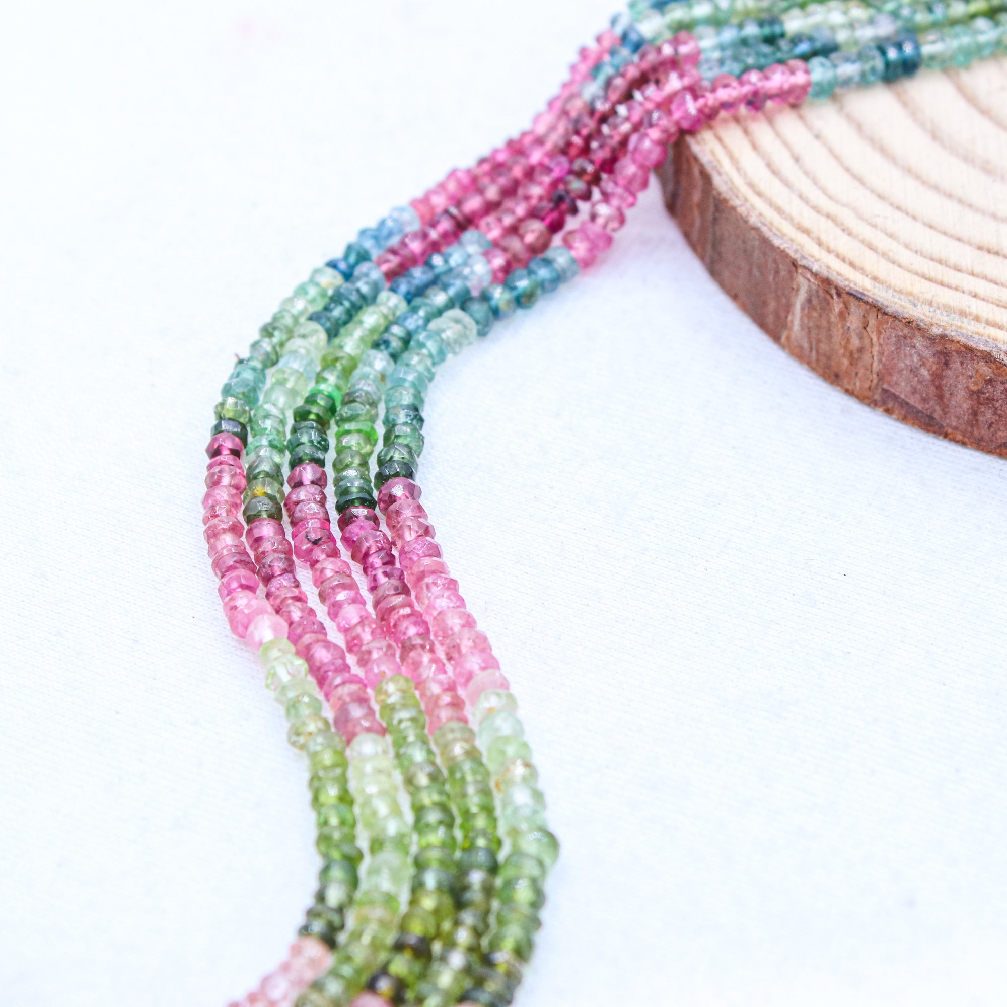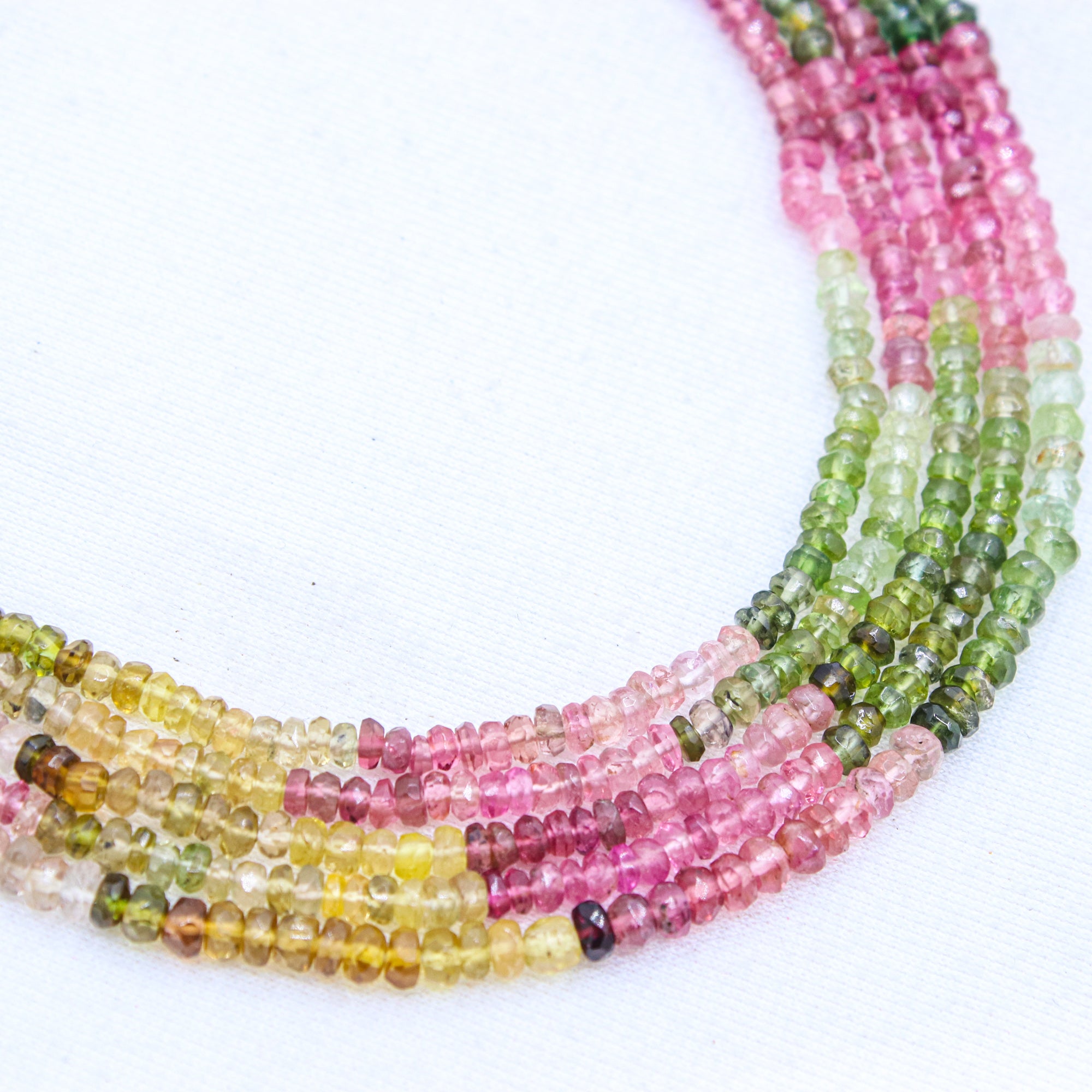 5 Line Natural Multi Tourmaline Round Faceted Spiritual Healing Gemstone Beads Strand Necklace