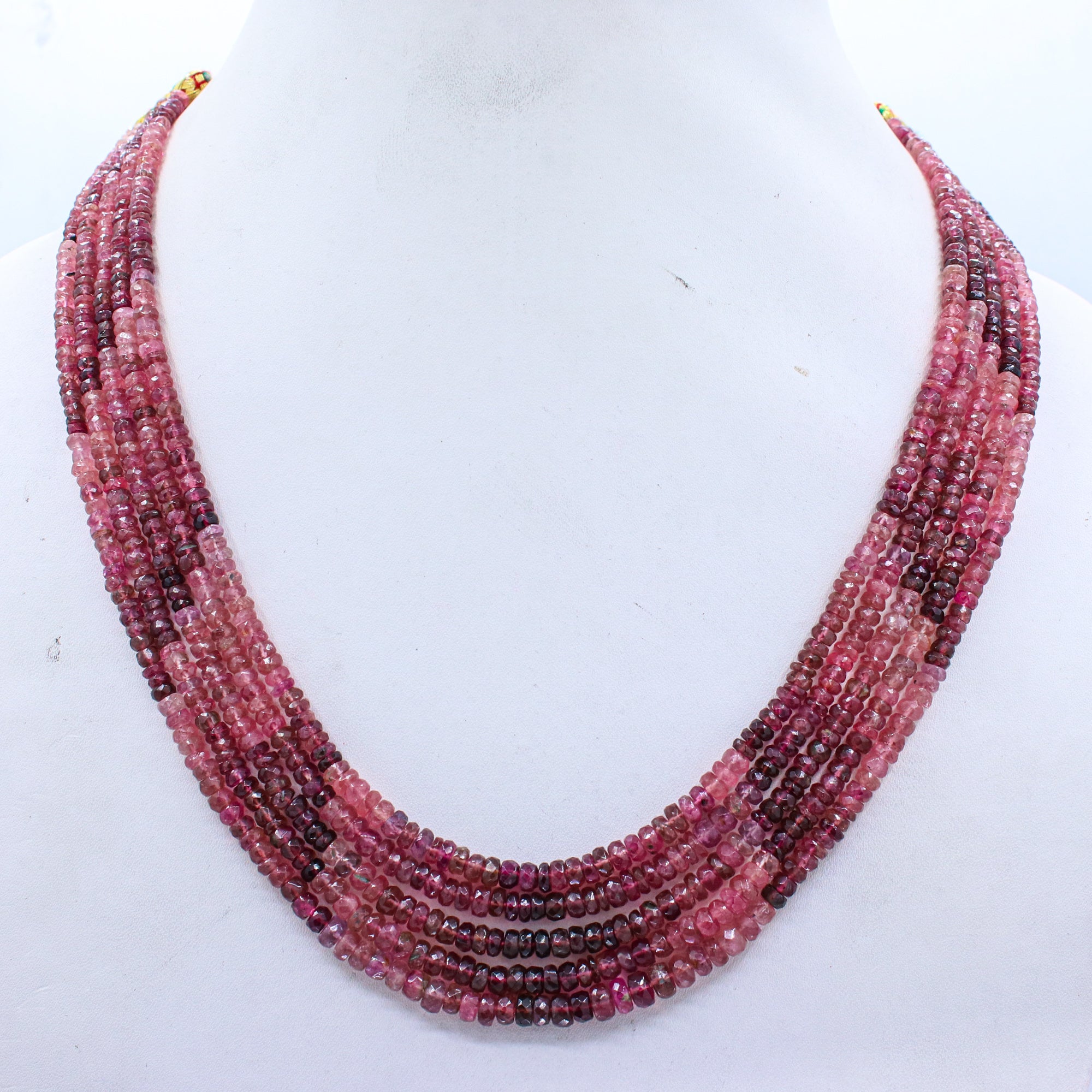 5 Line Natural Multi Tourmaline Round Faceted Spiritual Healing Gemstone Beads Strand Necklace