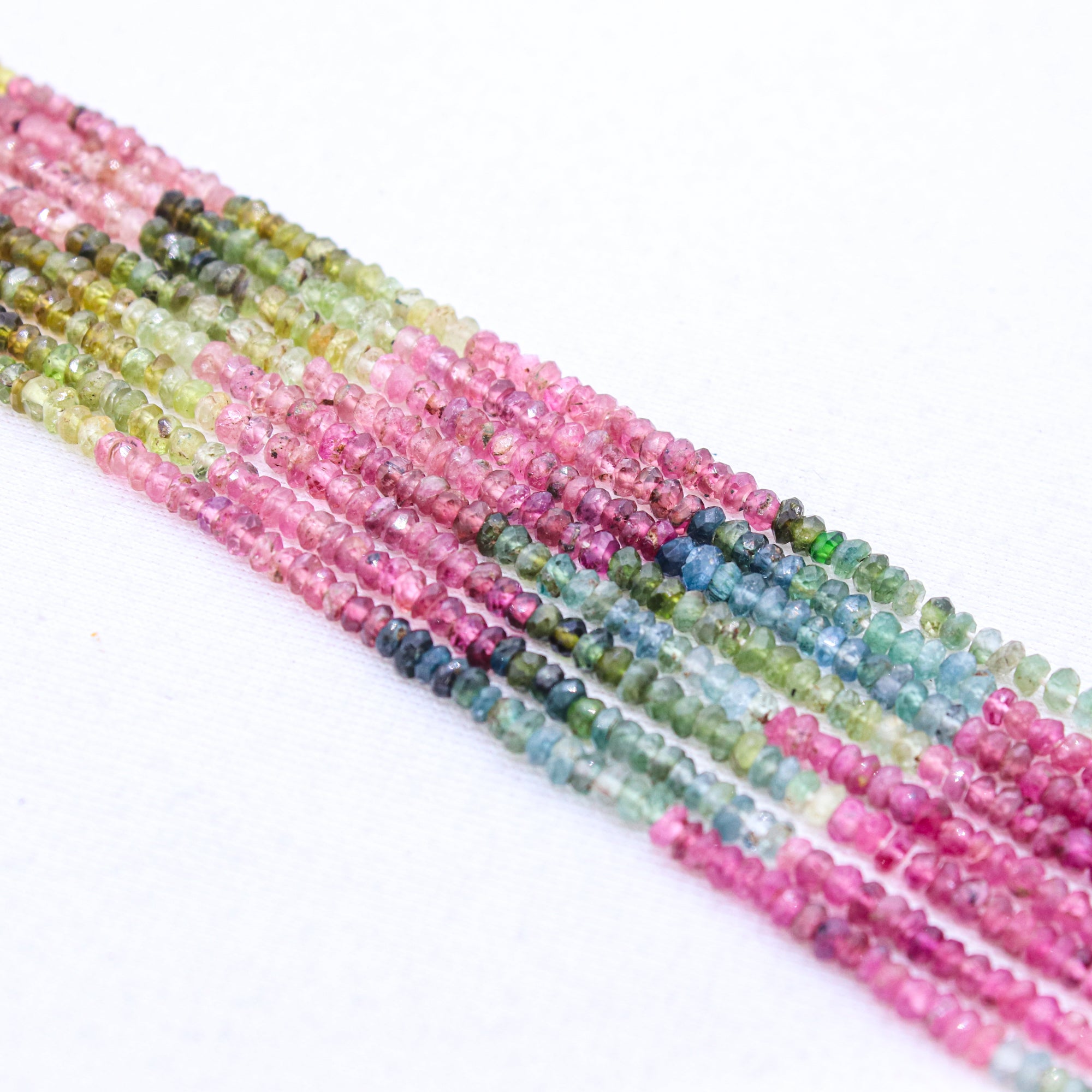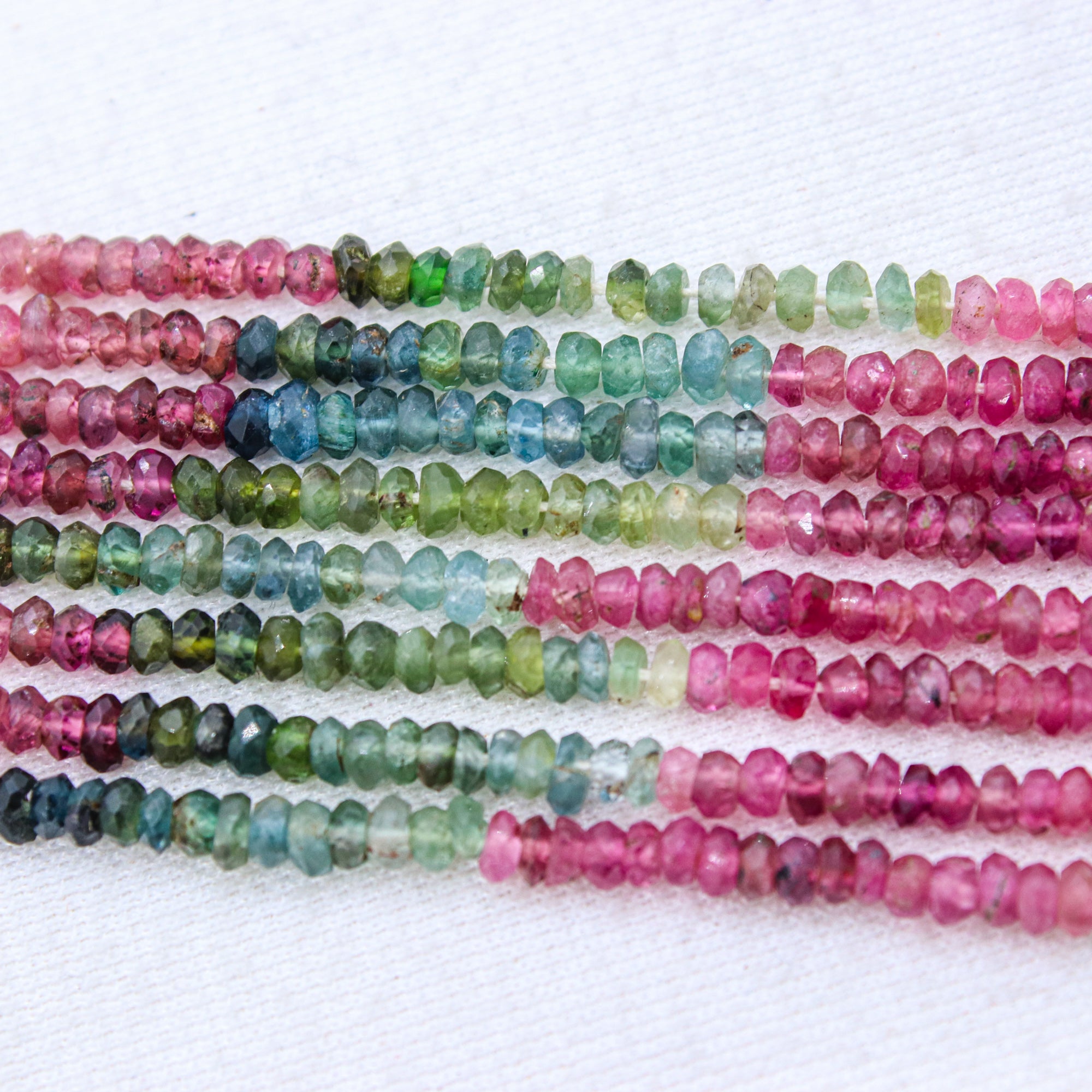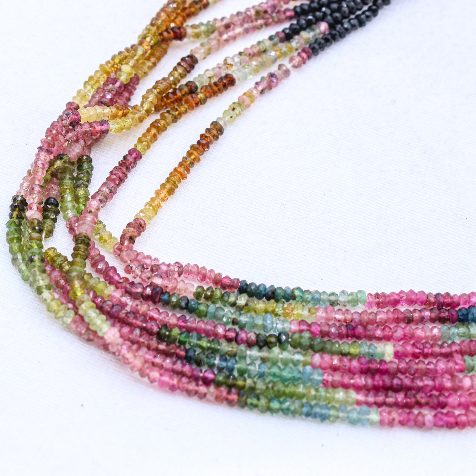 8 Line Natural Multi Tourmaline Round Faceted Spiritual Healing Gemstone Beads Strand Necklace