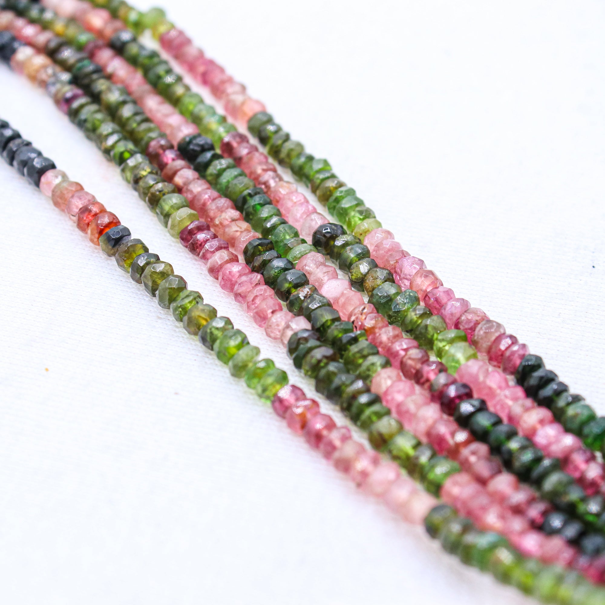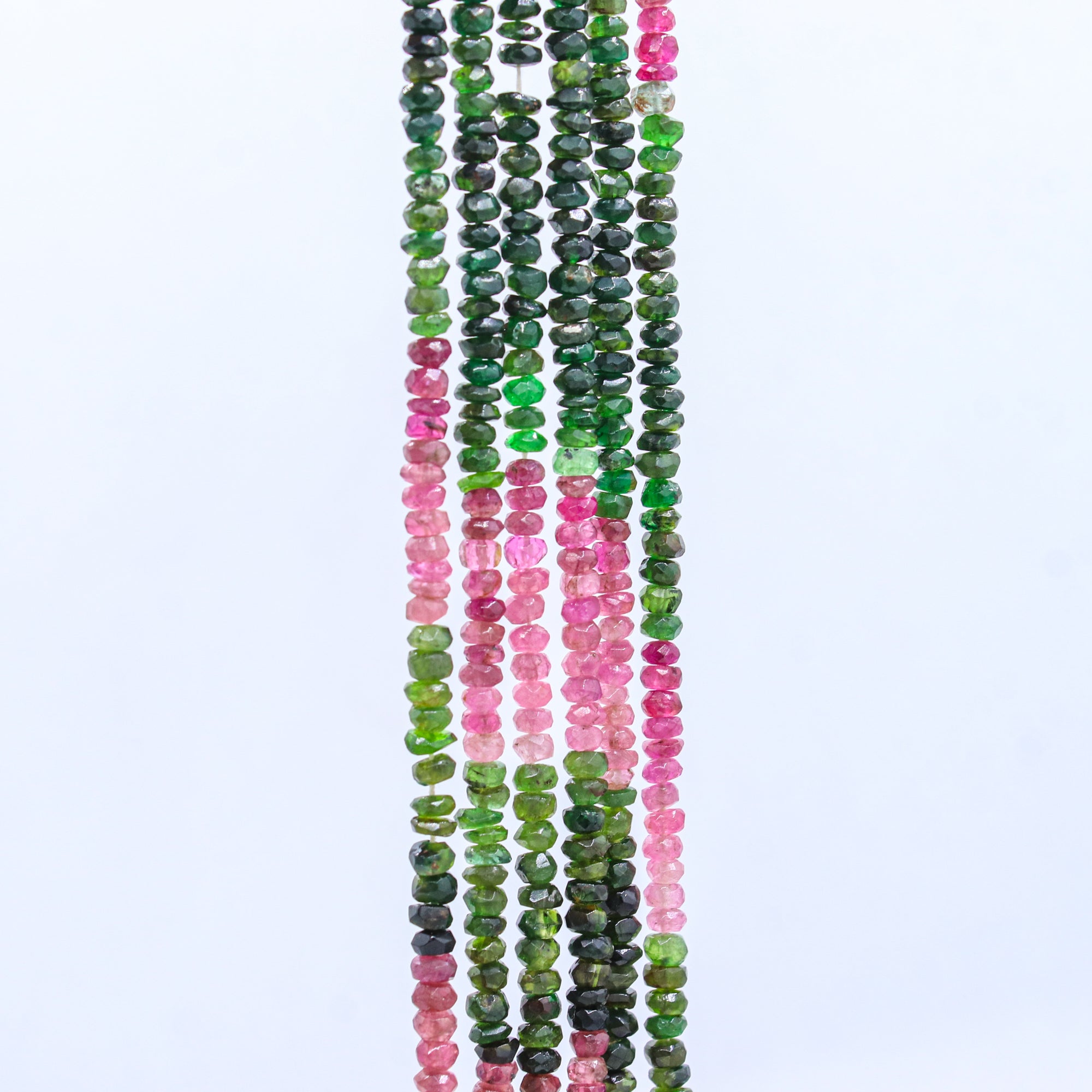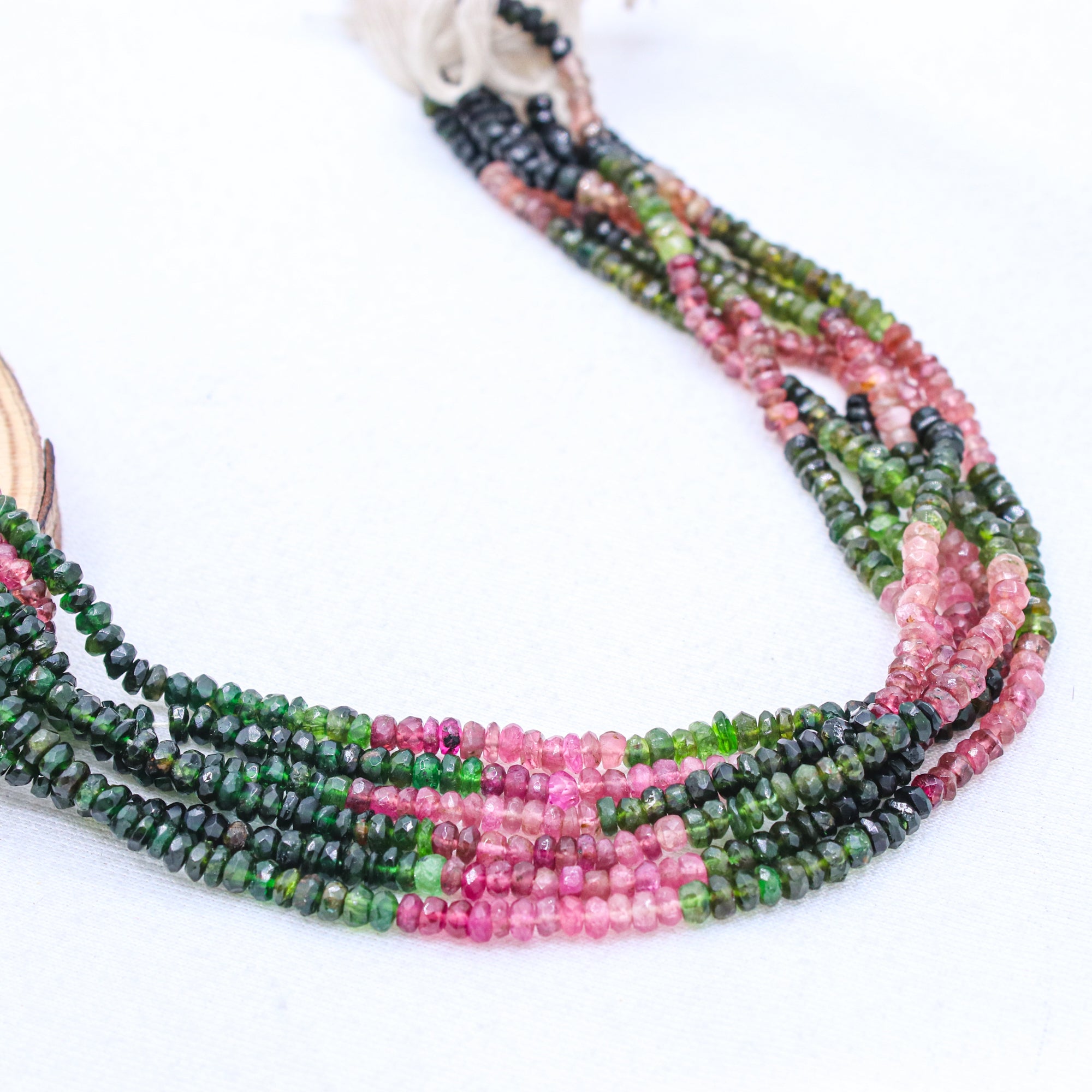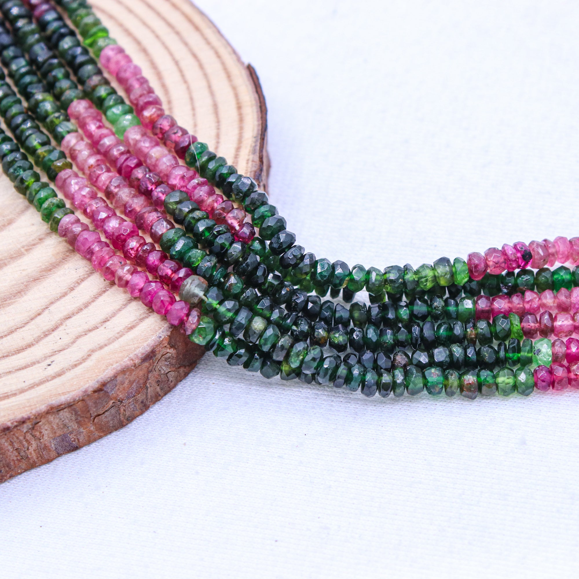 6 Line Natural Multi Tourmaline Round Faceted Spiritual Healing Gemstone Beads Strand Necklace