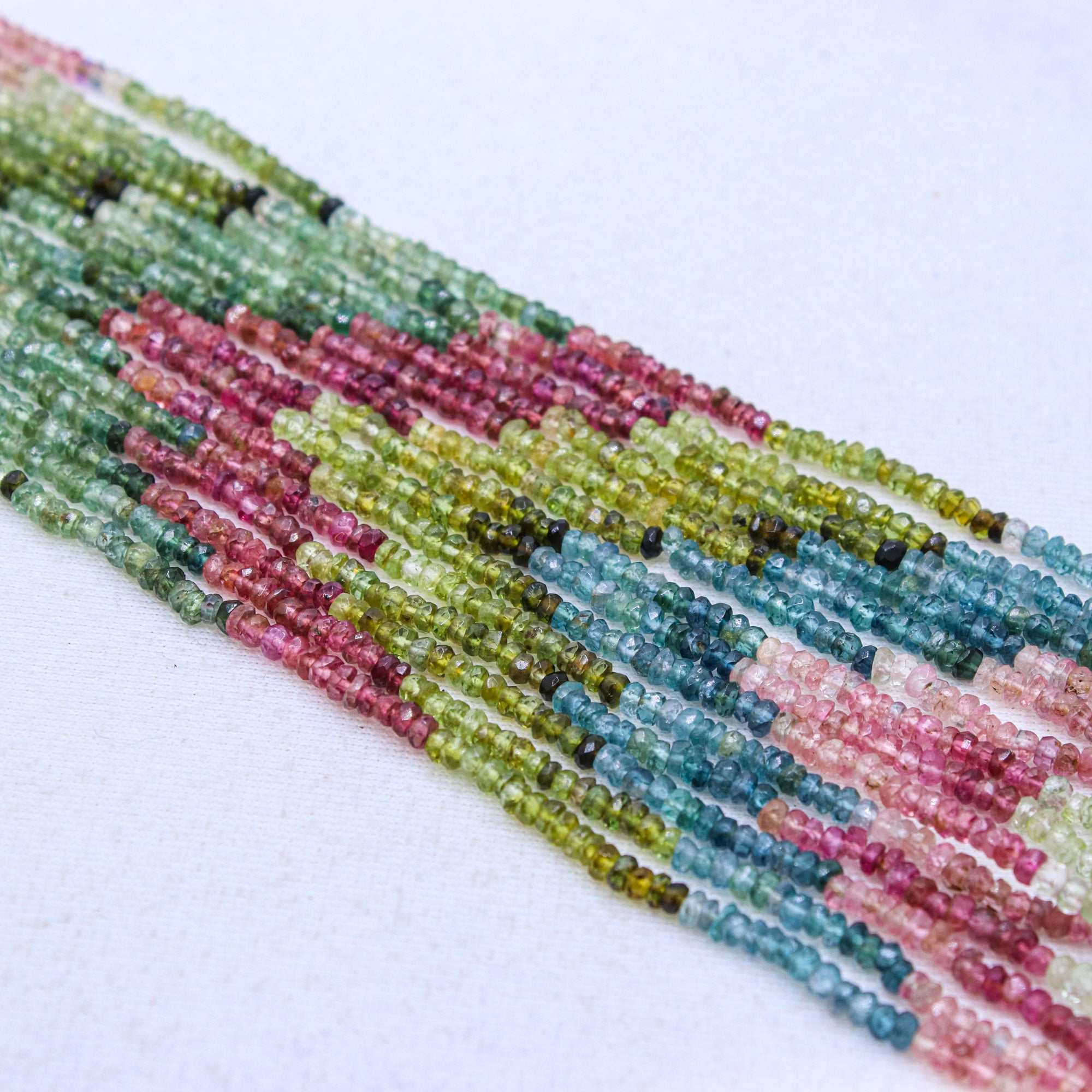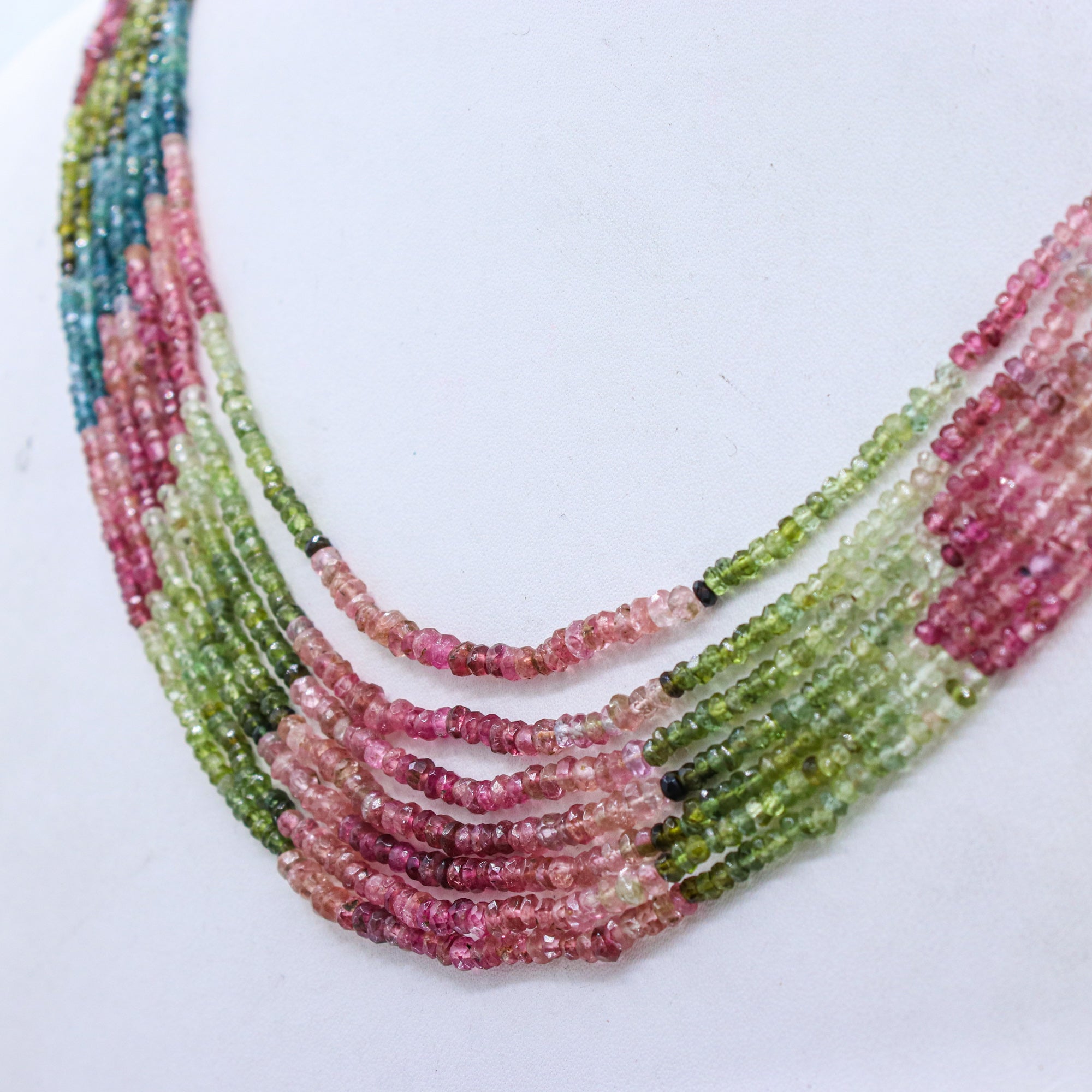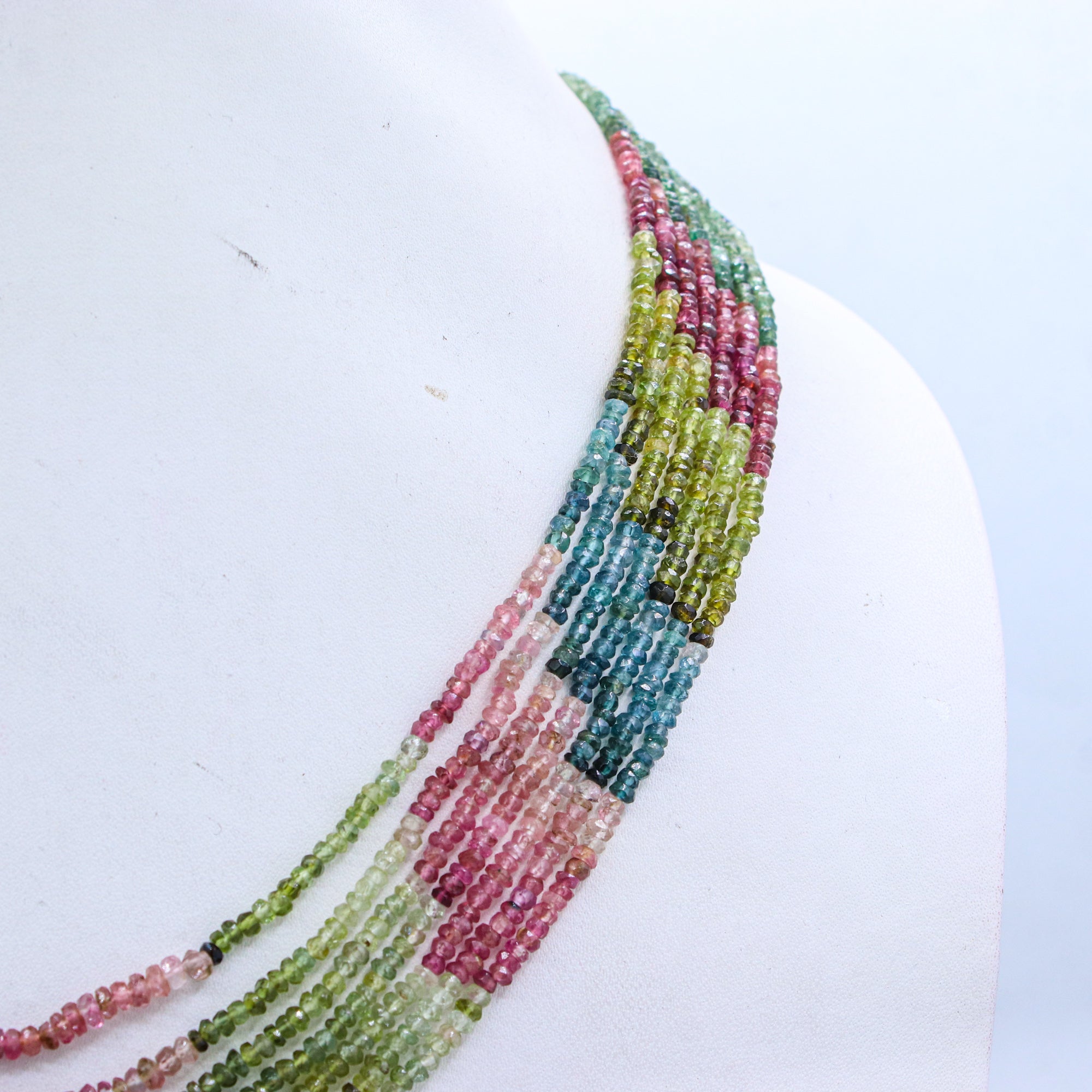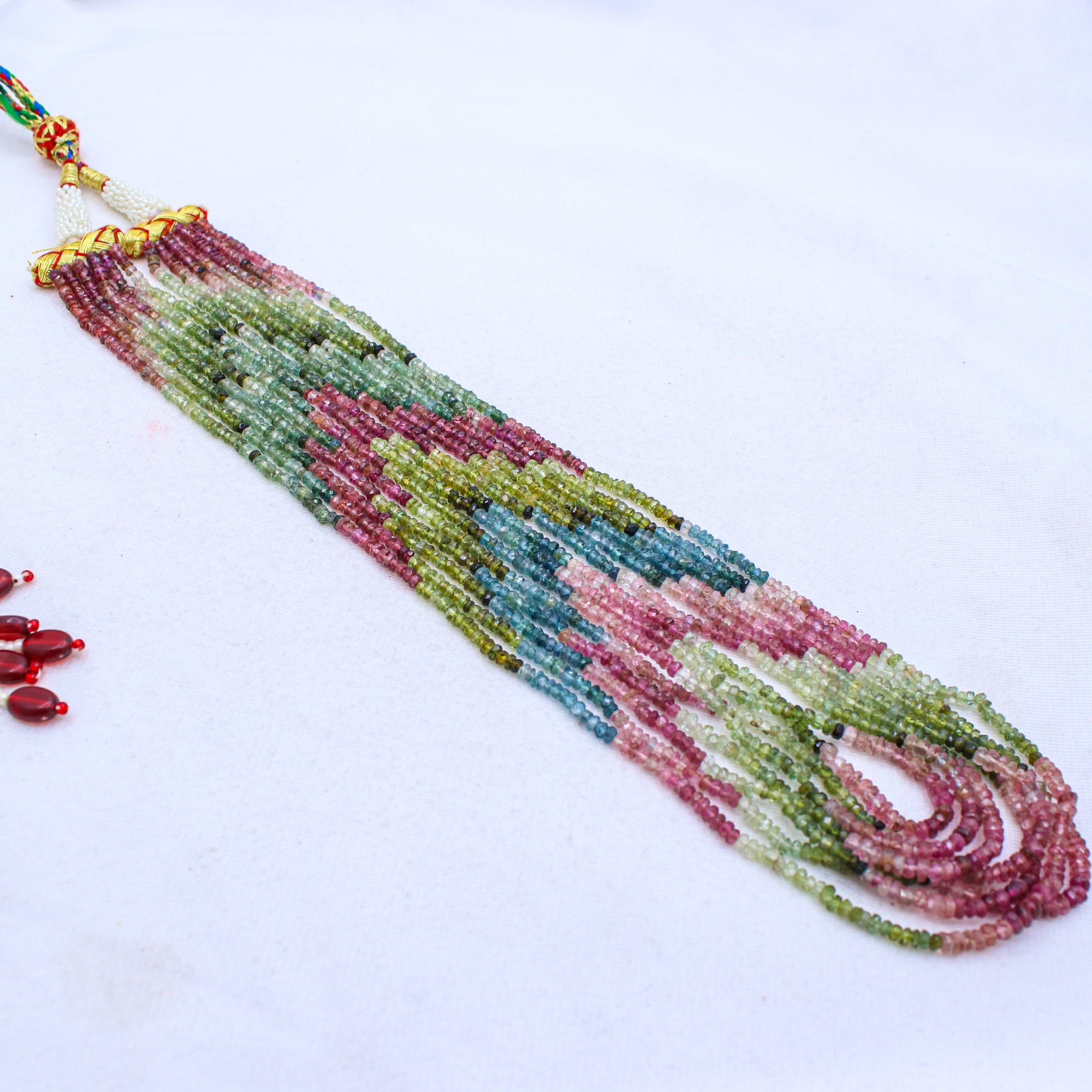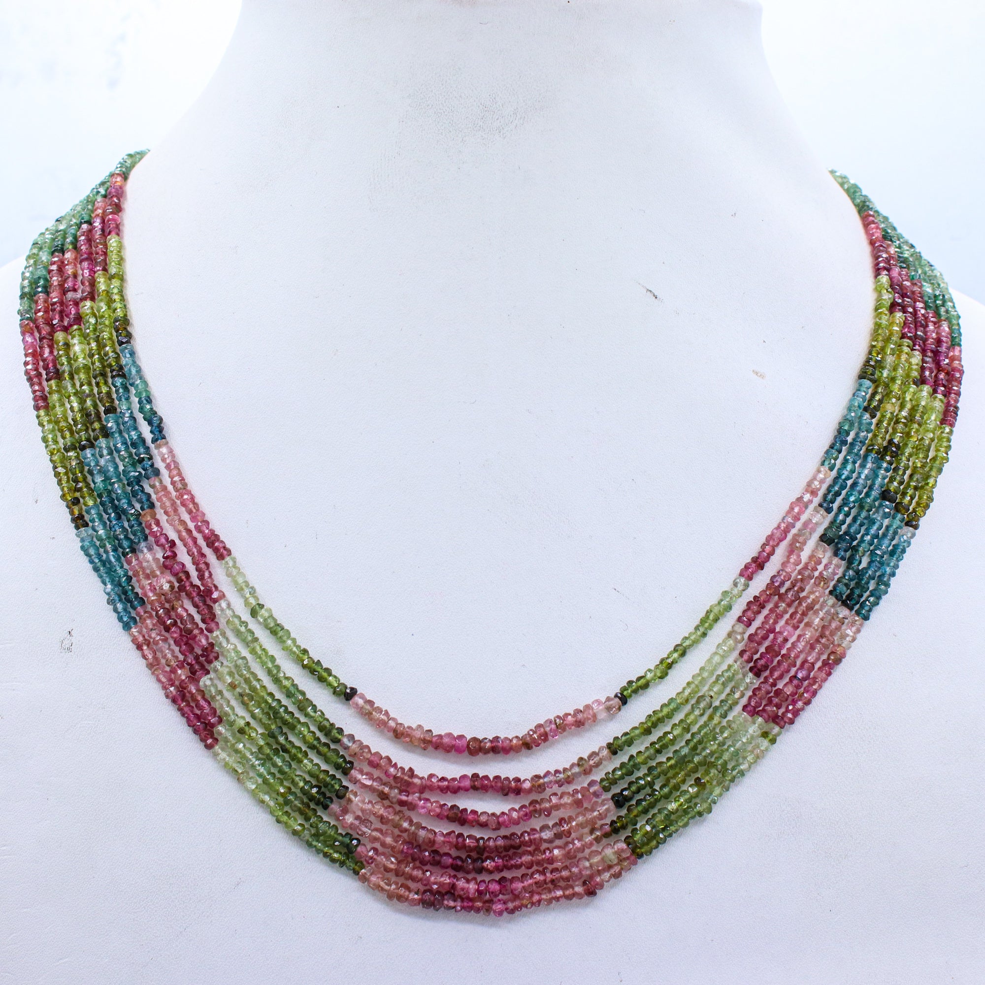 Certified 7 Line Natural Multi Tourmaline Round Faceted Spiritual Healing Gemstone Beads Strand Necklace