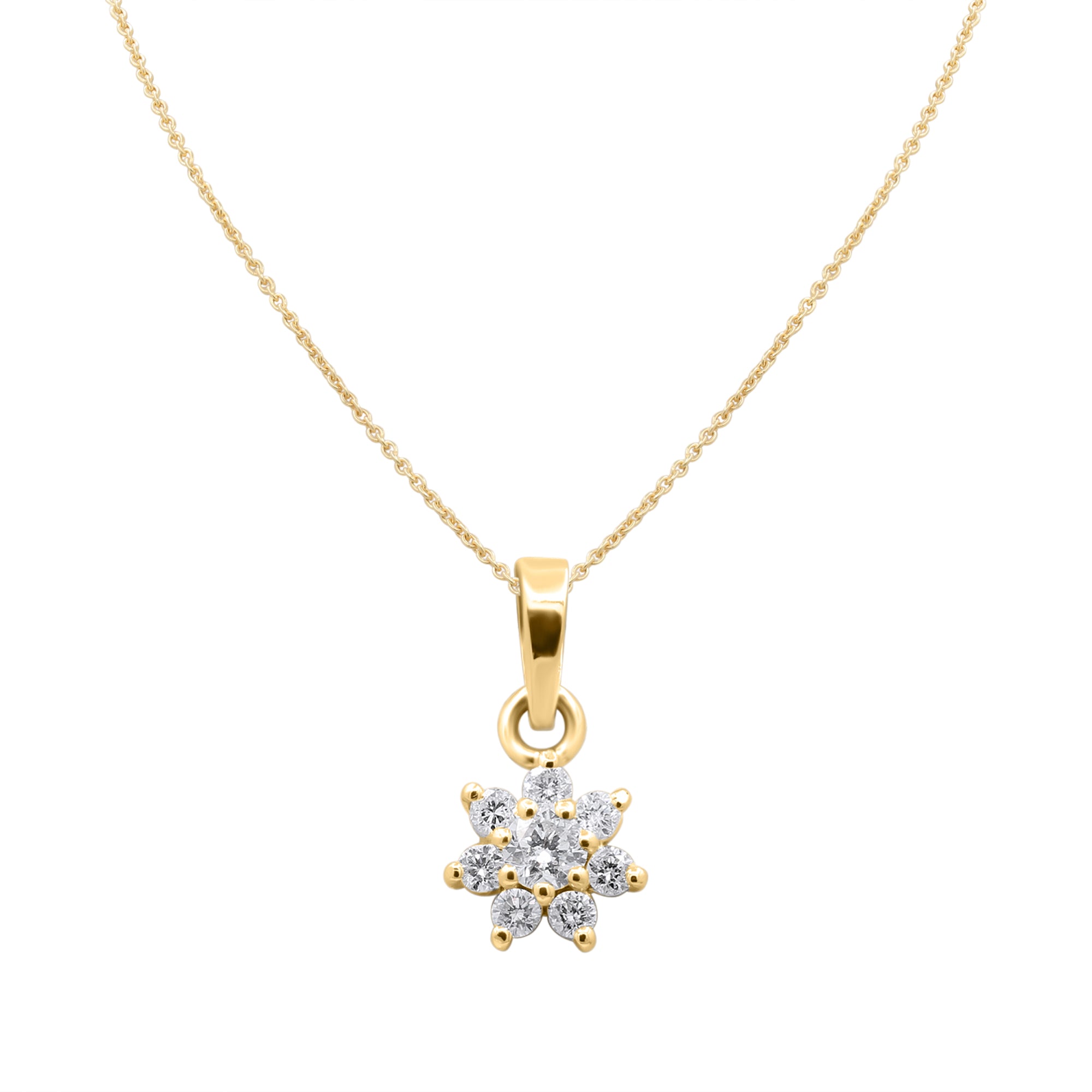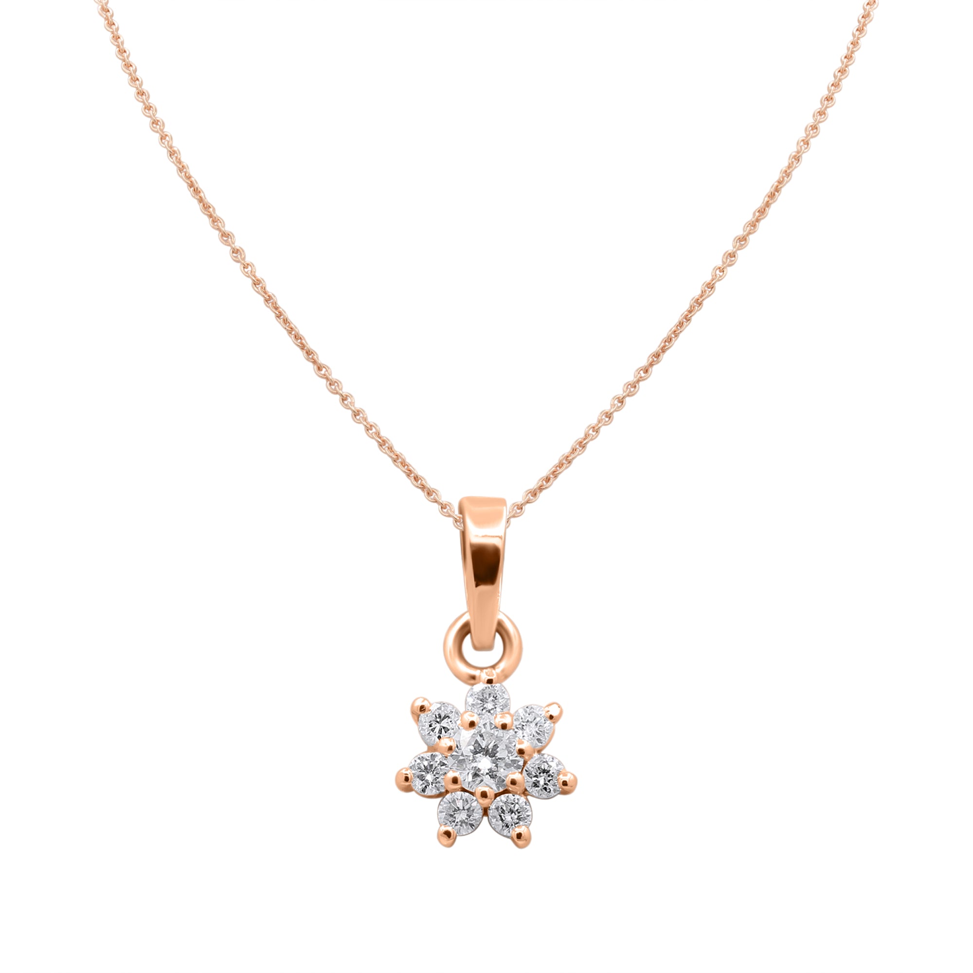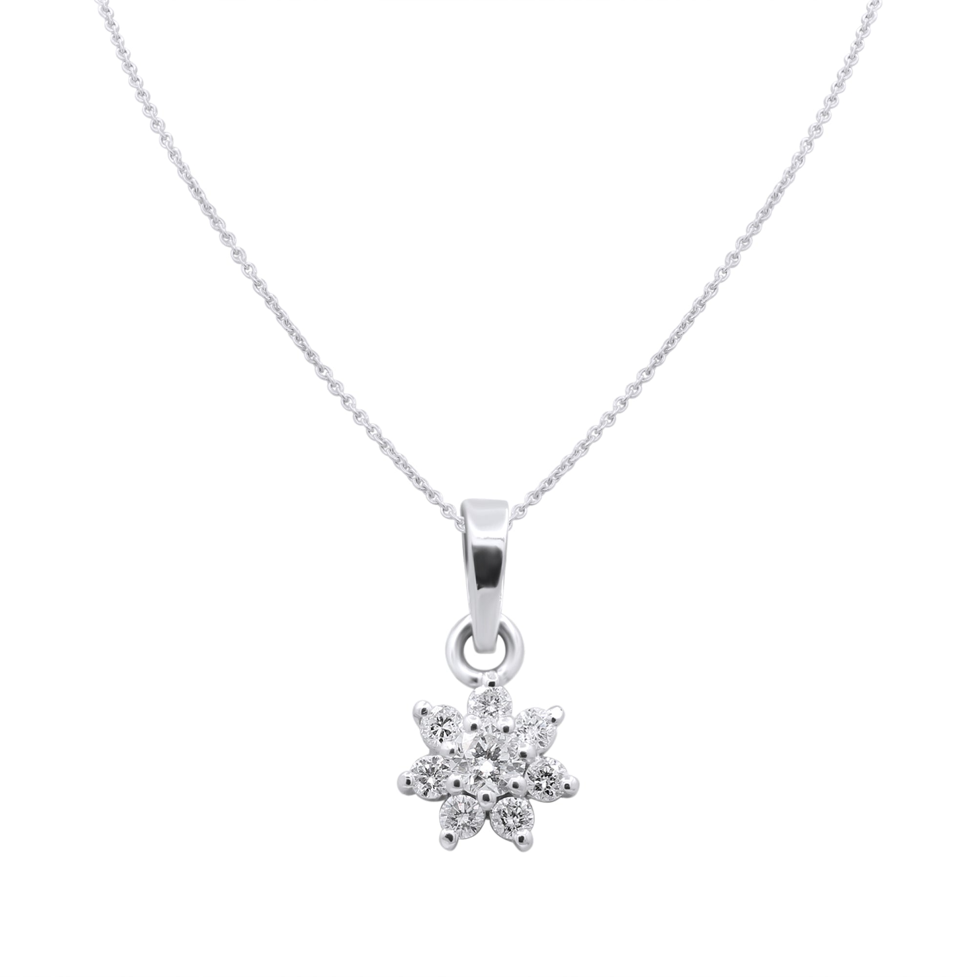 Floral Shaped Natural Diamond 14k White Gold Pendant With Chain