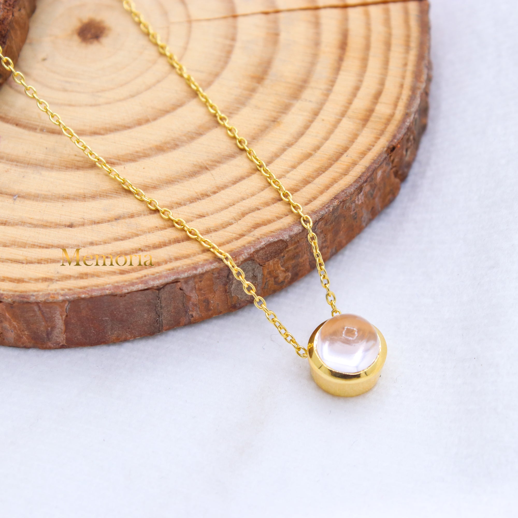 Buy Best Quality Certified Natural Rose Quartz Round Shaped Cabochon Cut Gemstone Chain Necklace