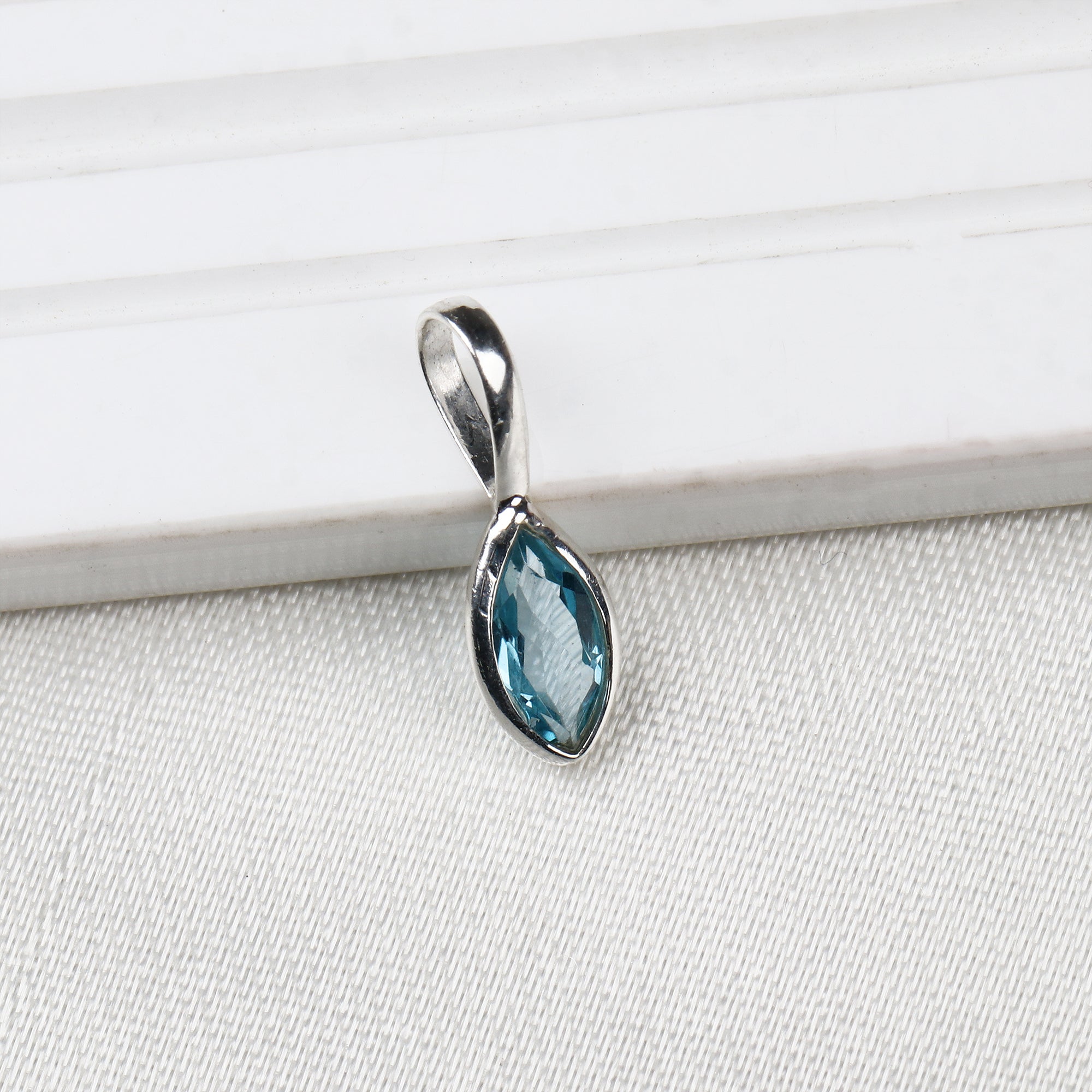 Natural Blue Topaz Pendant 925 Sterling Silver Minimal Teardrop Gemstone Necklace Charm