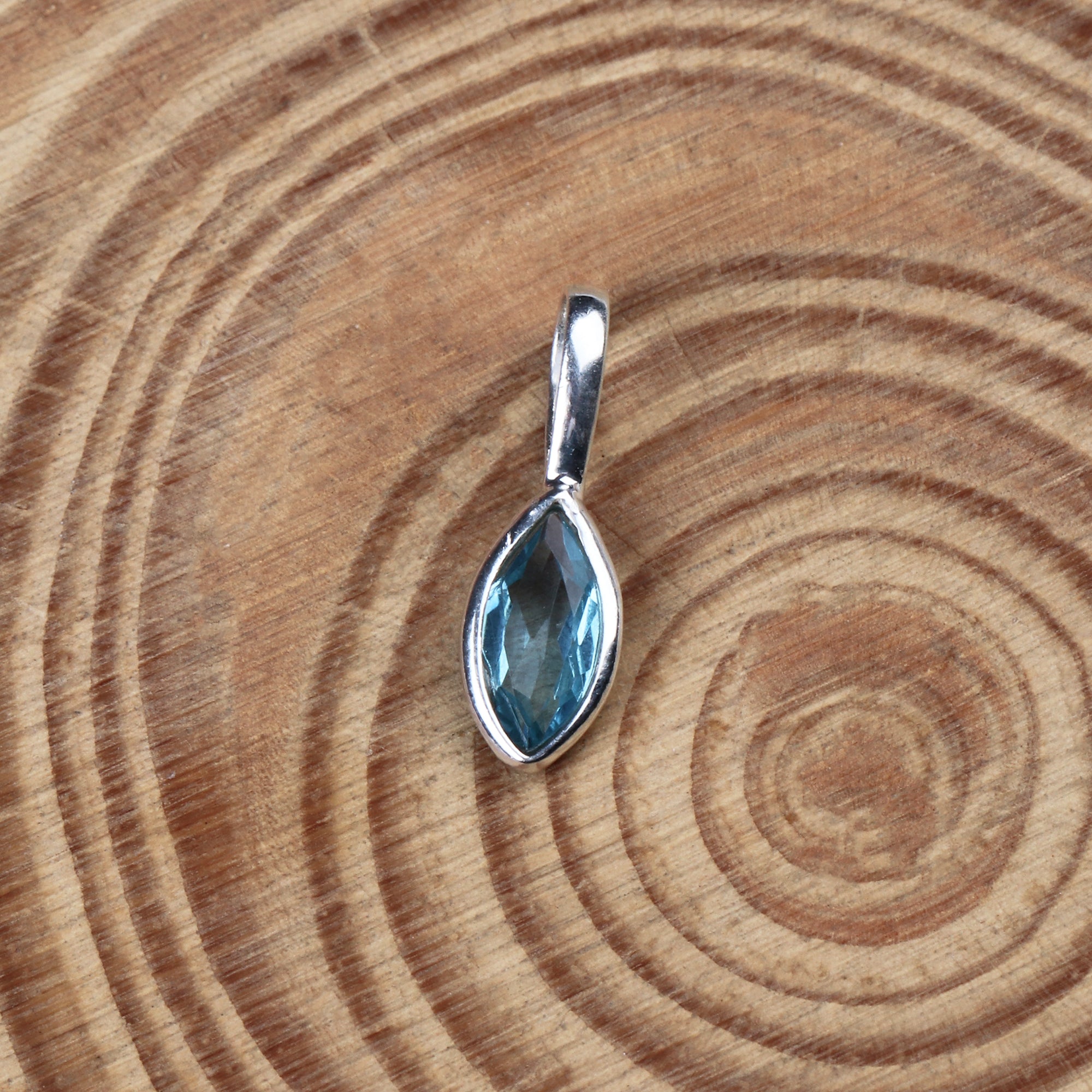 This elegant natural blue topaz pendant features a finely faceted teardrop gemstone set in genuine 925 sterling silver, offering a timeless and minimalist look. The cool blue hue of the topaz adds a touch of calm elegance, making it perfect for everyday wear or layering with other necklaces. A beautiful handmade gemstone pendant, ideal as a thoughtful gift for birthdays, anniversaries, or lovers of understated silver jewelry.