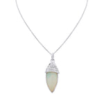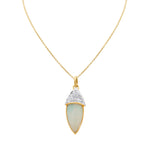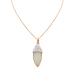 Natural Opal Gemstone and Precious Diamond 18k Yellow Gold Pendant With Chain