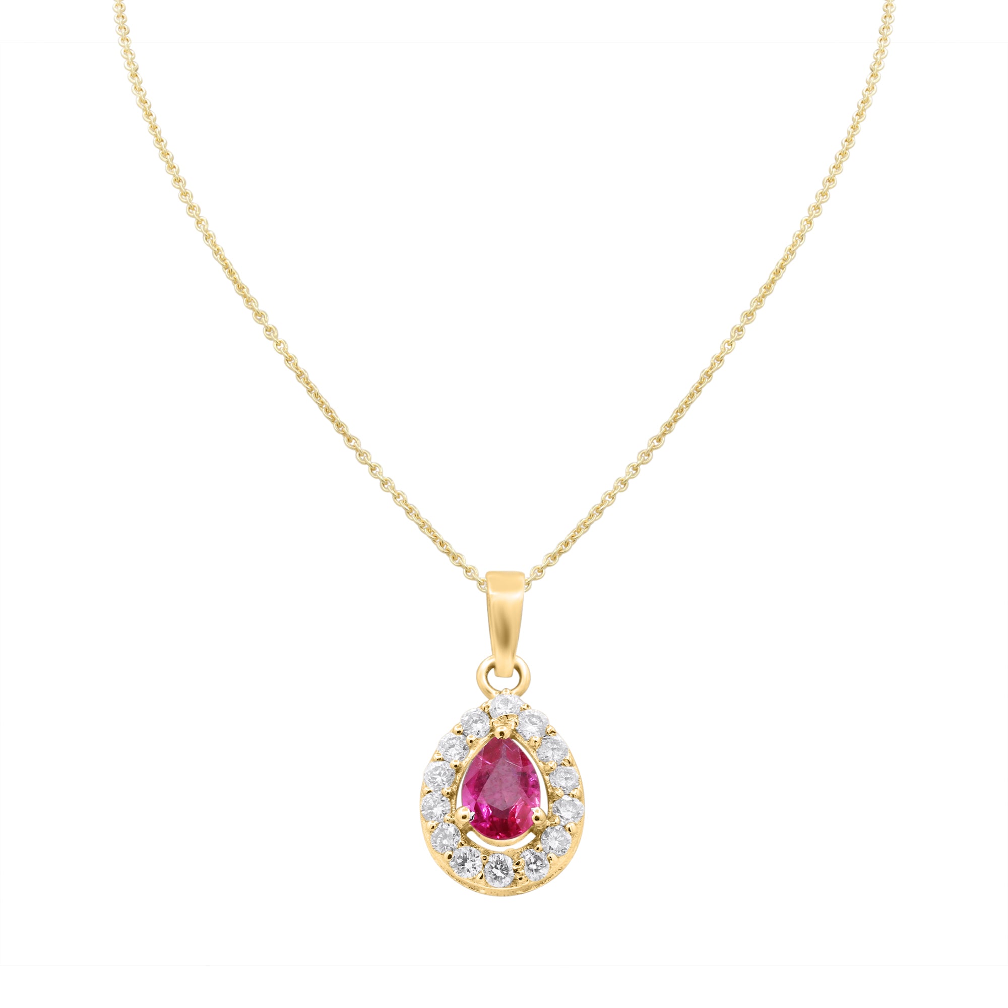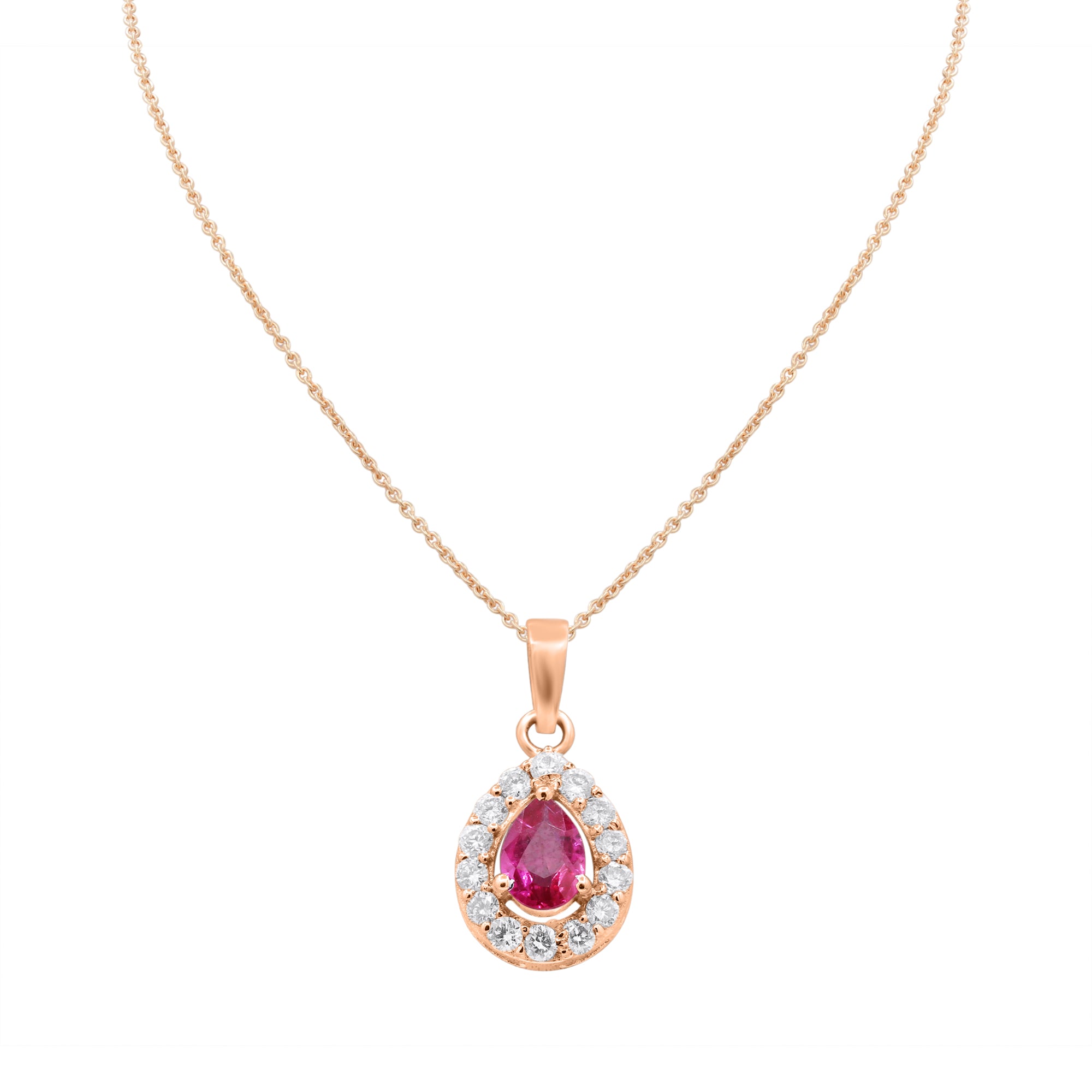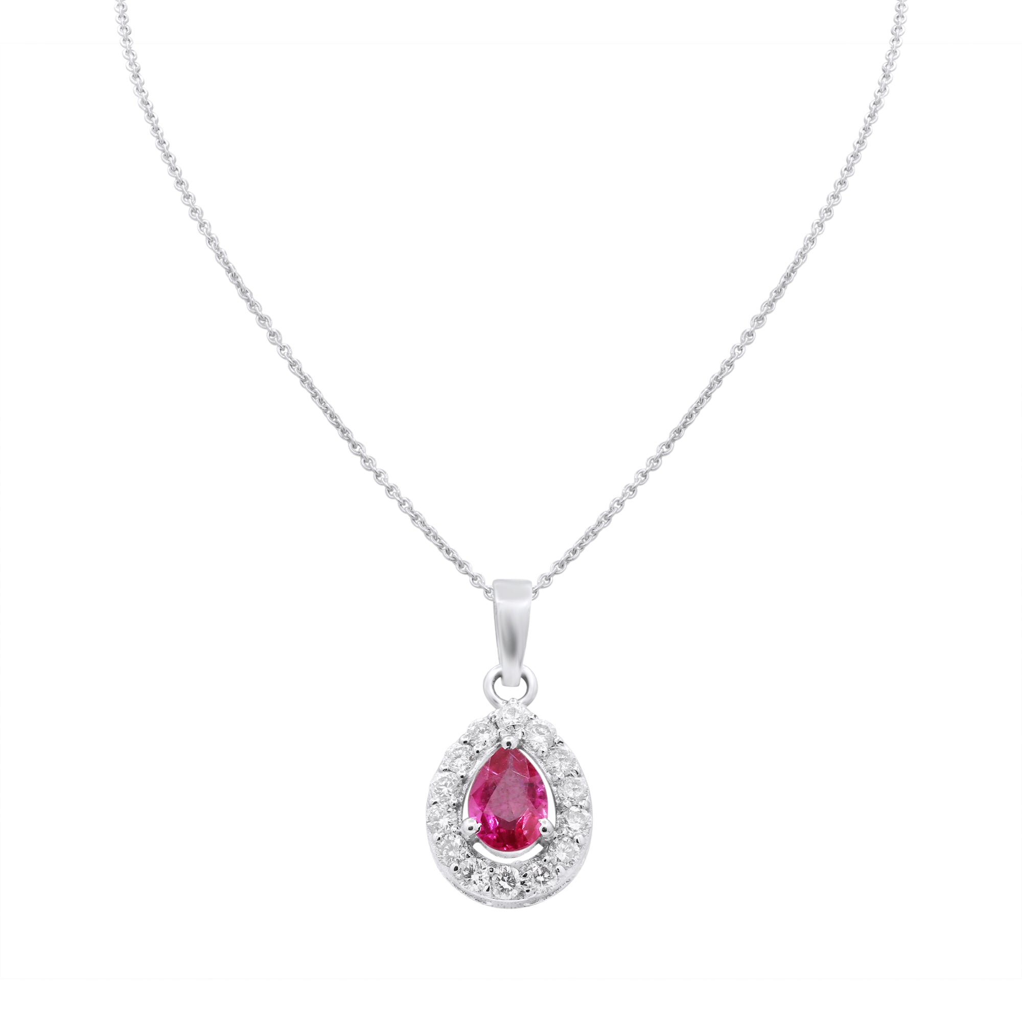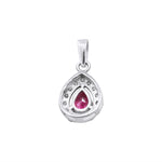 Natural Ruby Pear Cut Gemstone With Diamond 14k White Gold Pendant With Chain