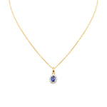 Natural Sapphire Gemstone and Diamond 14k Yellow Gold Pendant With Chain