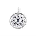 Natural Sapphire Gemstone and Diamond 18k White Gold Flower Pendant With Chain