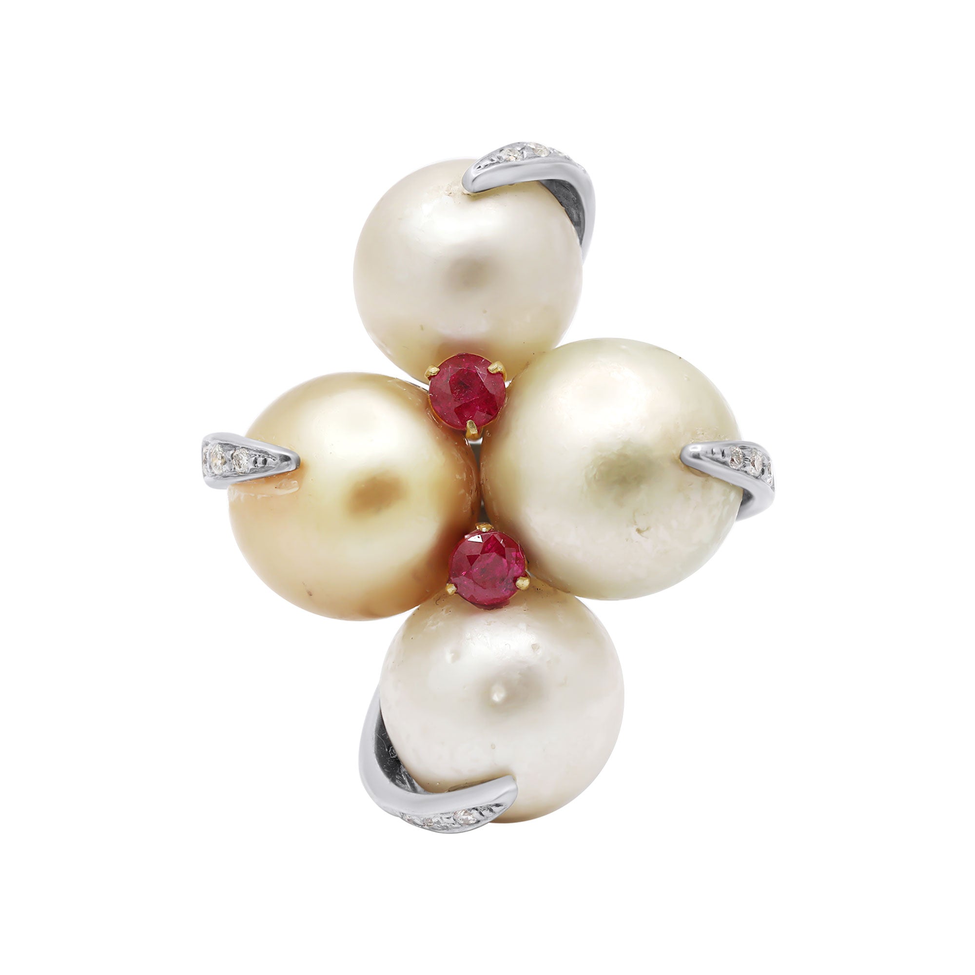 925 Sterling Silver Natural Pearl Ruby Gemstone and Diamond Ring For Her
