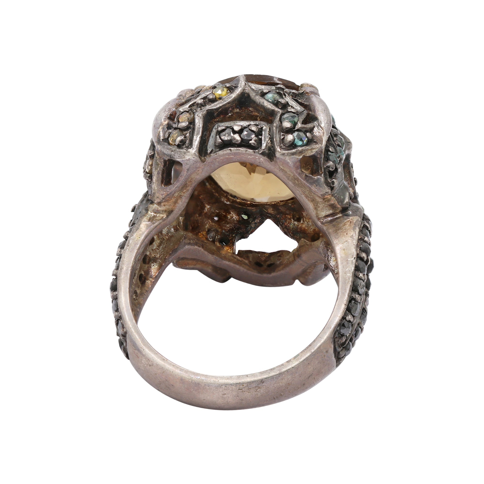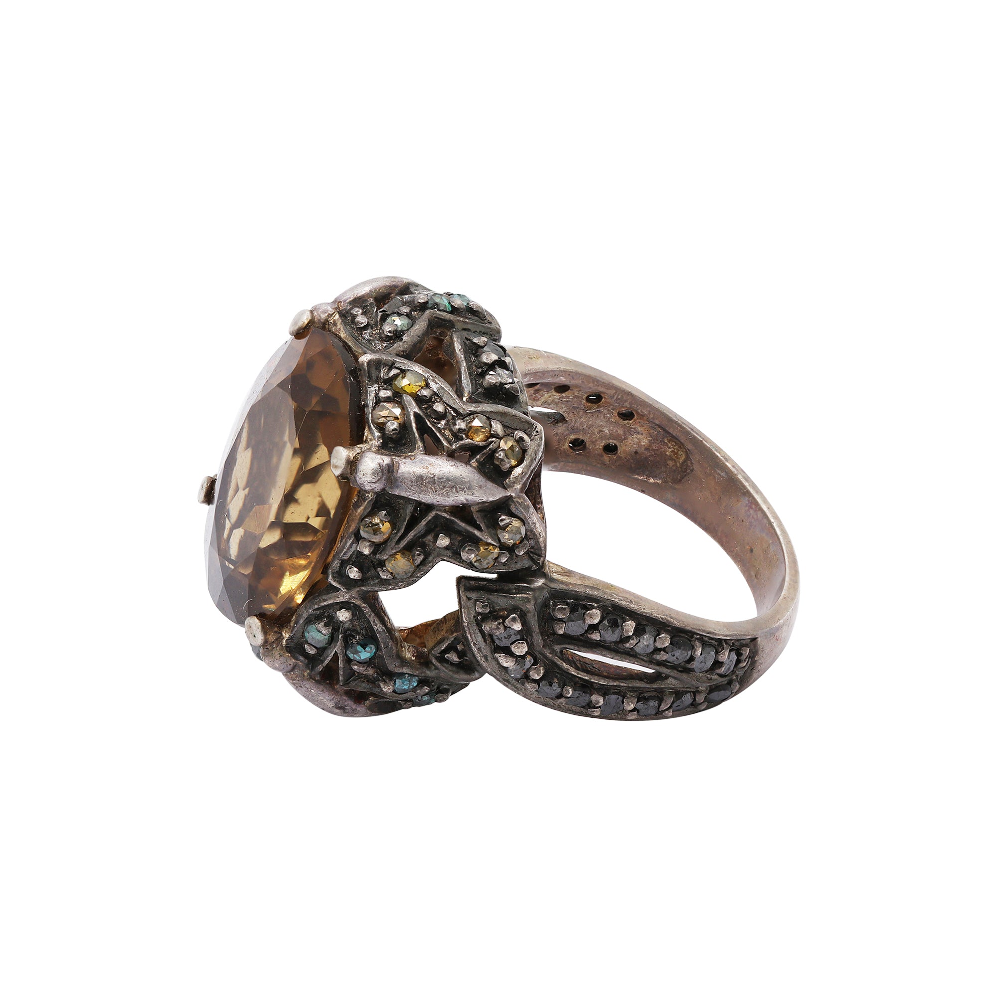 Item Type: Beer Quartz and Diamond Silver Ring