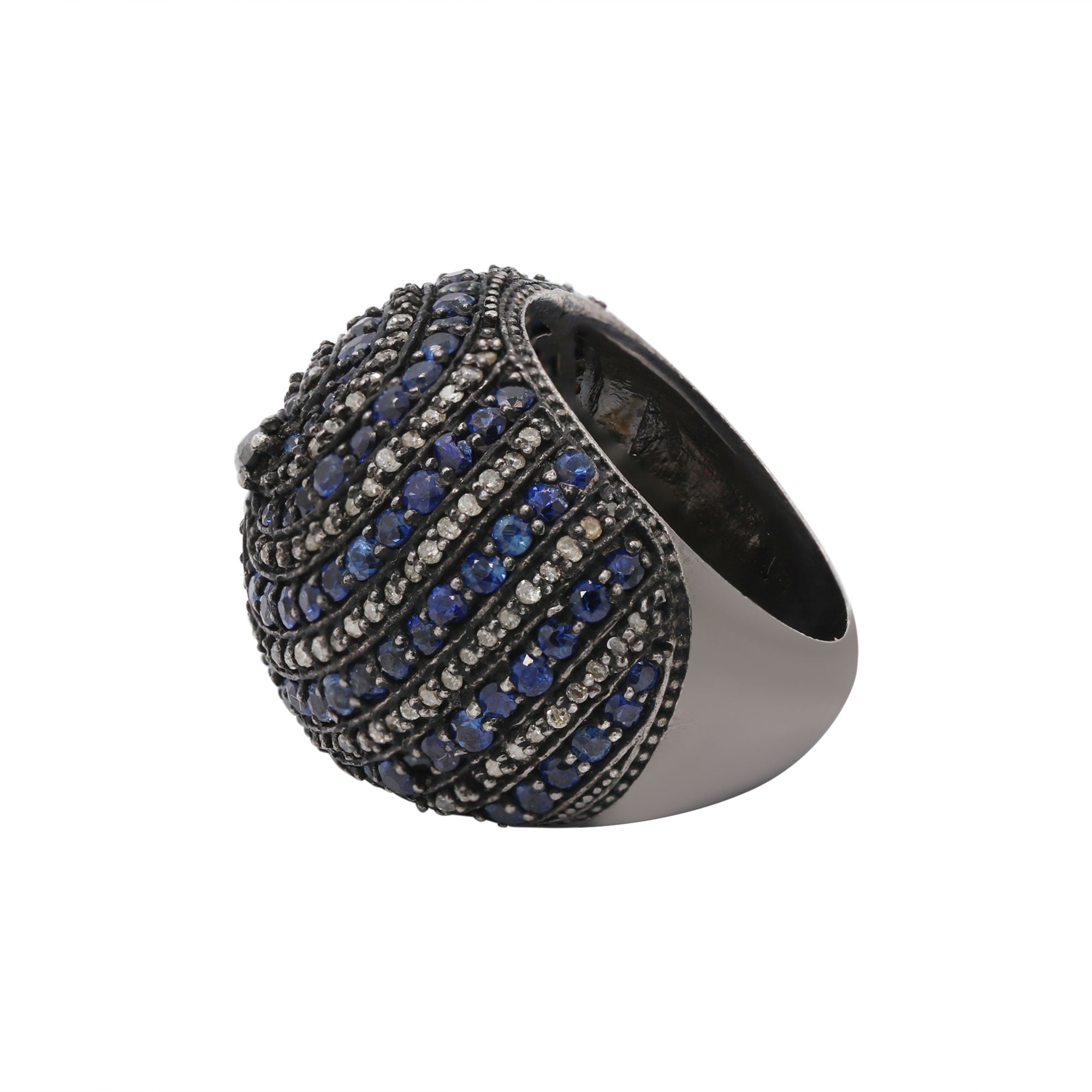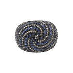 Blue Sapphire and Blue Diamond 925 Sterling Silver Black Rhodium Ring