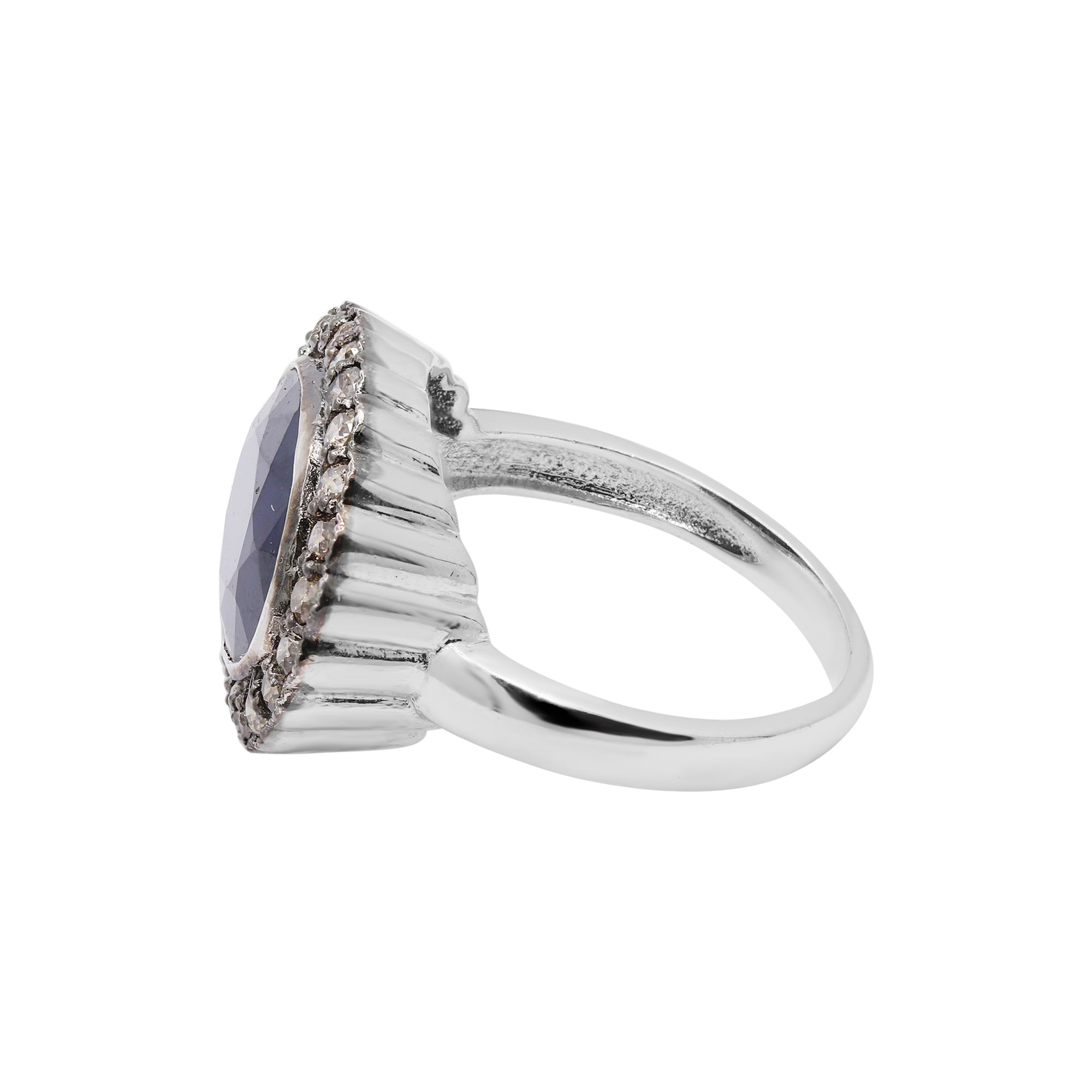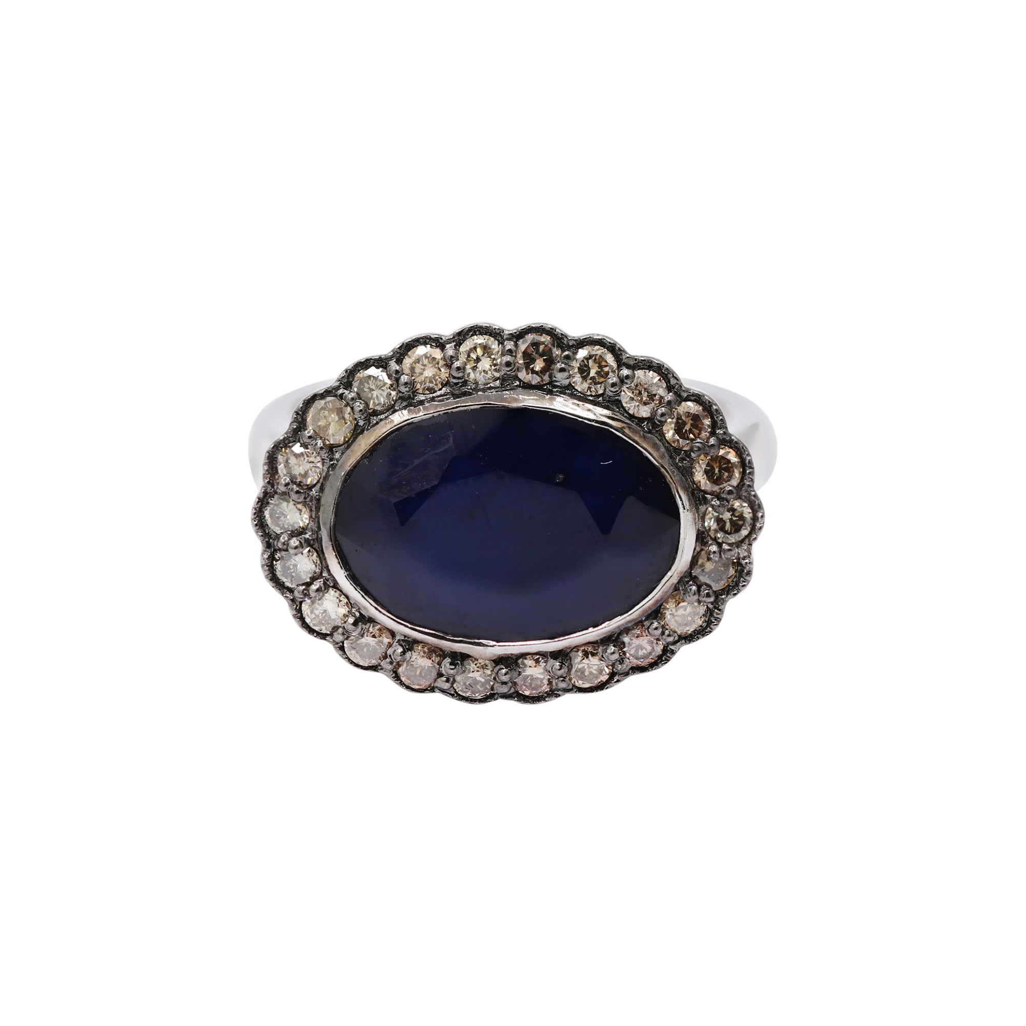 Item Type: Blue Sapphire and Diamond Silver Ring