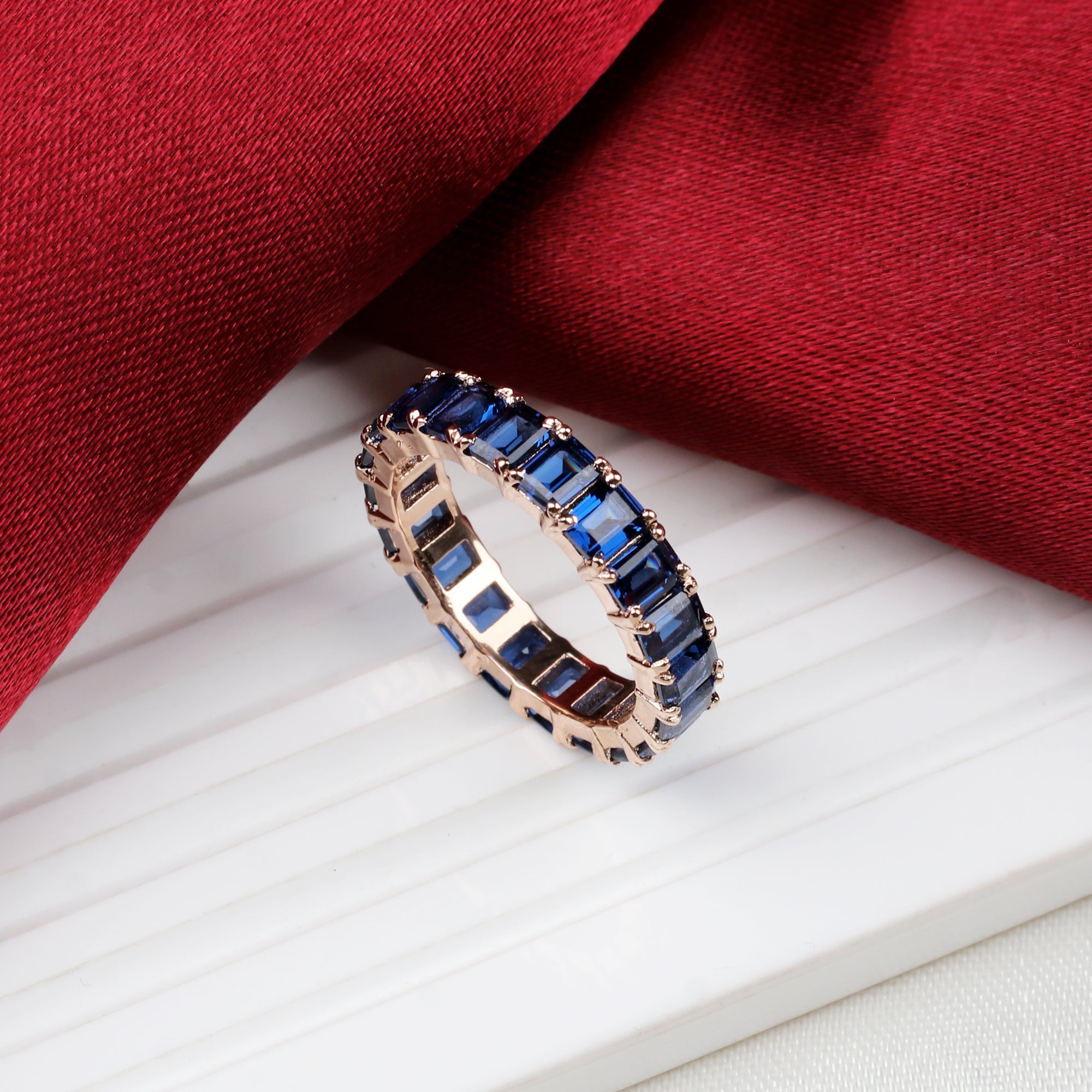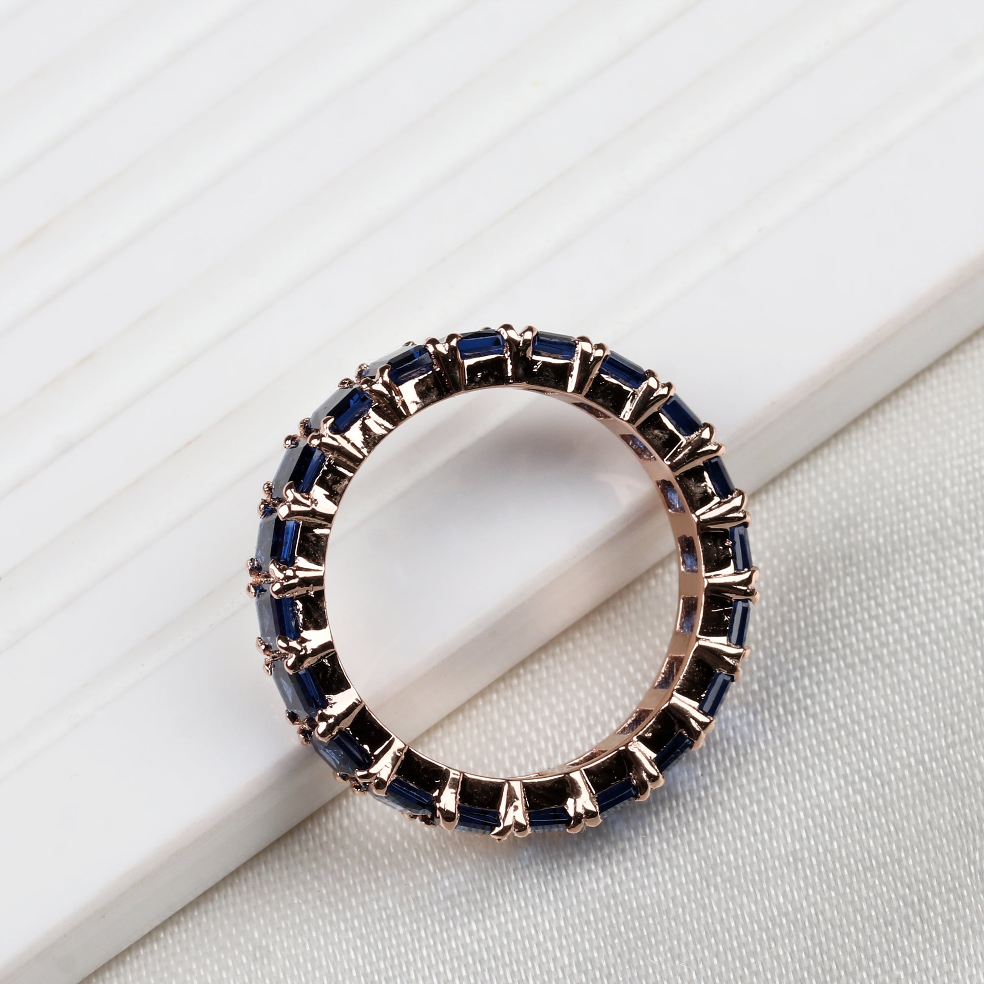 Blue Sapphire Eternity Band Ring Handmade Rose Gold Plated Statement Ring
