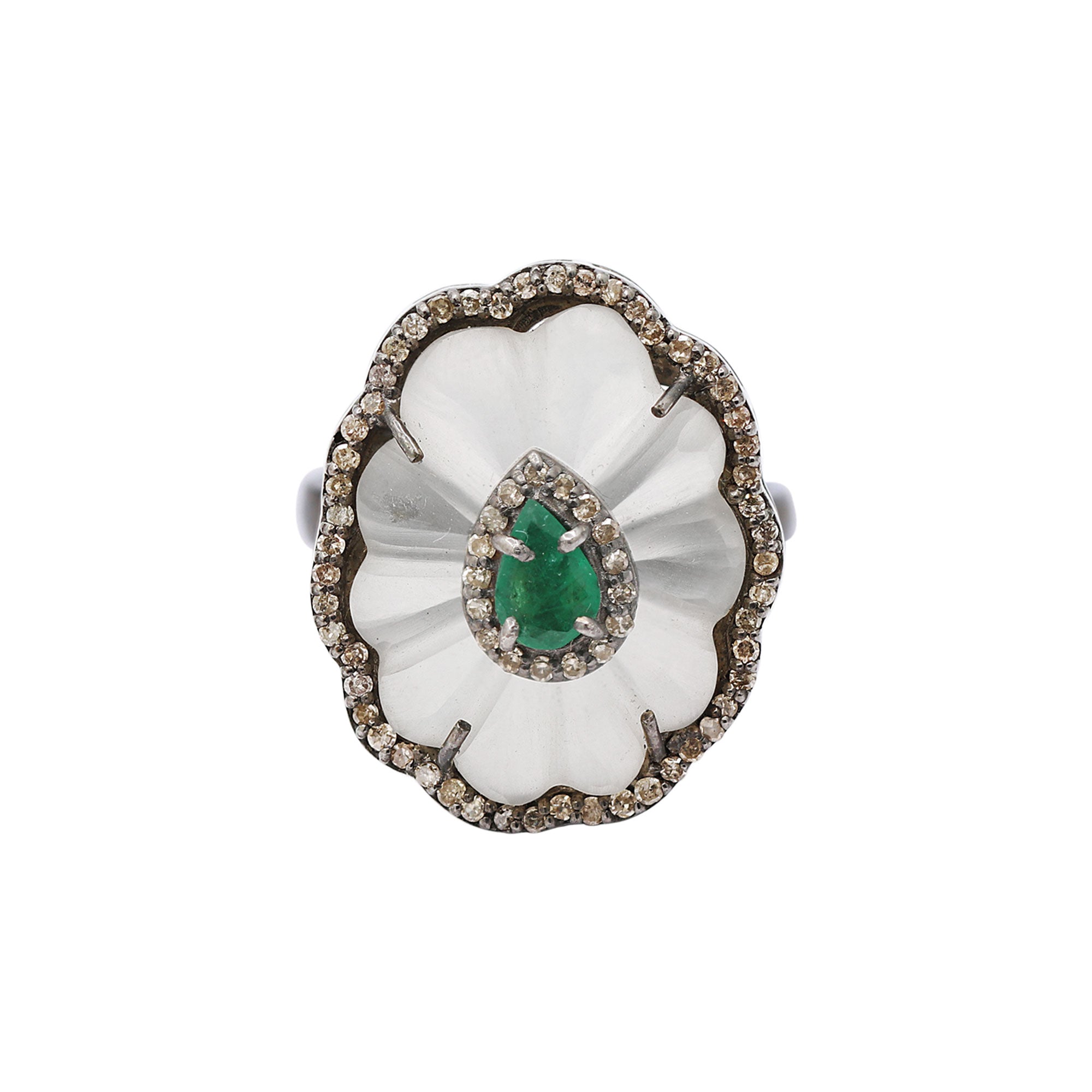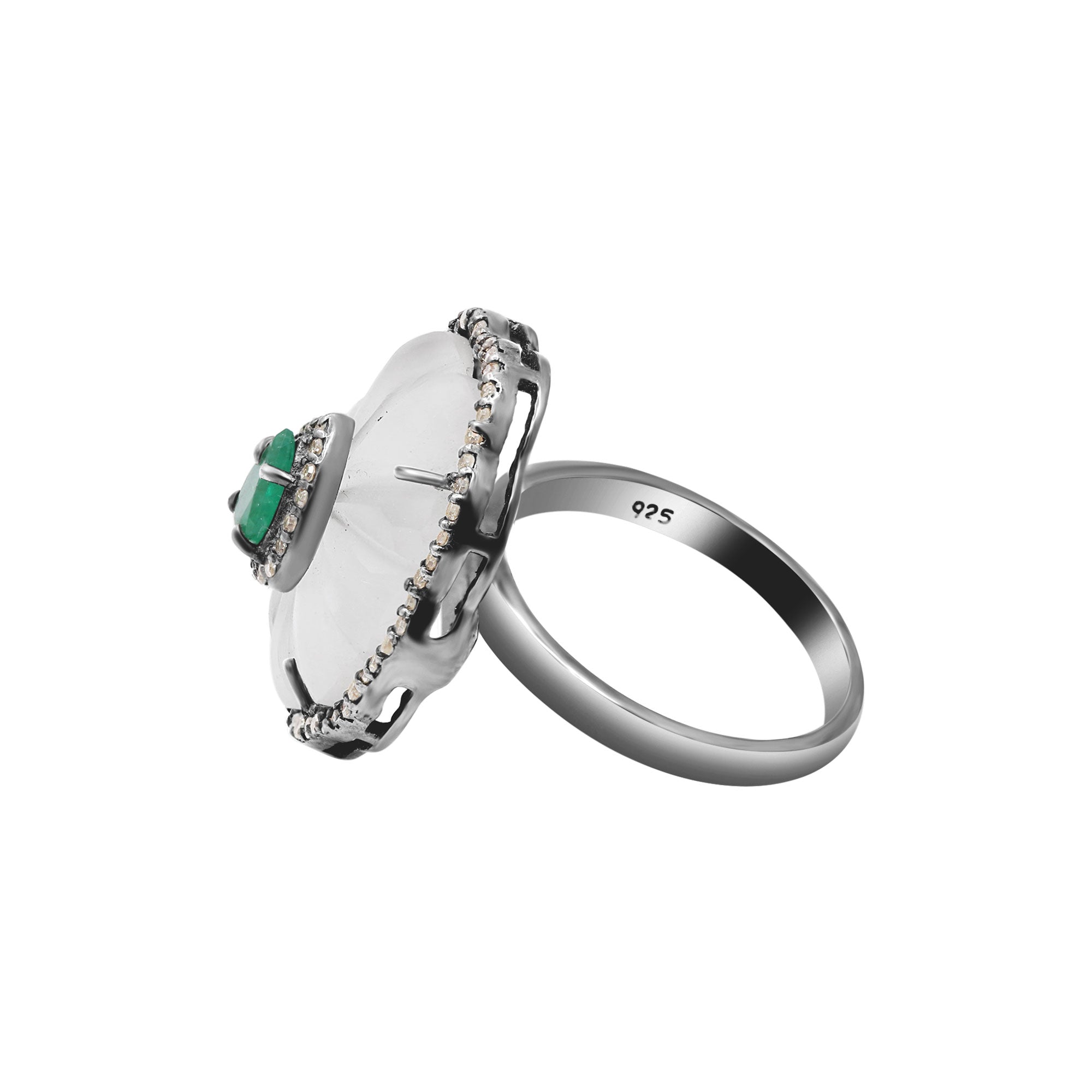 Item Type: Chalcedony Emerald and Diamond 925 Silver Ring