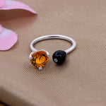 Citrine & Black Onyx Silver Ring Dual Stone Adjustable Open Band Jewelry