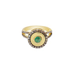 Natural Emerald Gemstone and Diamond 925 Sterling Silver Gold Plated ring