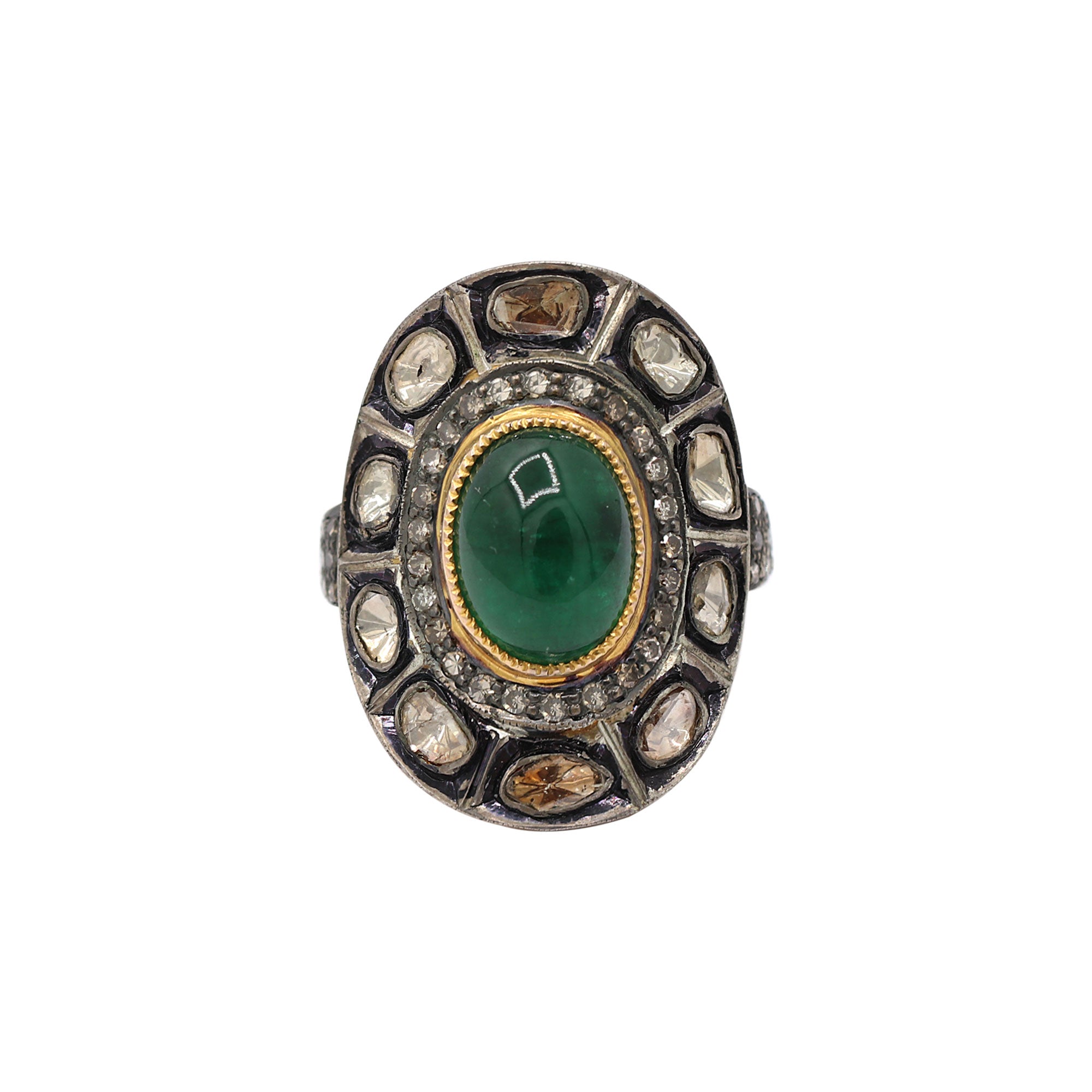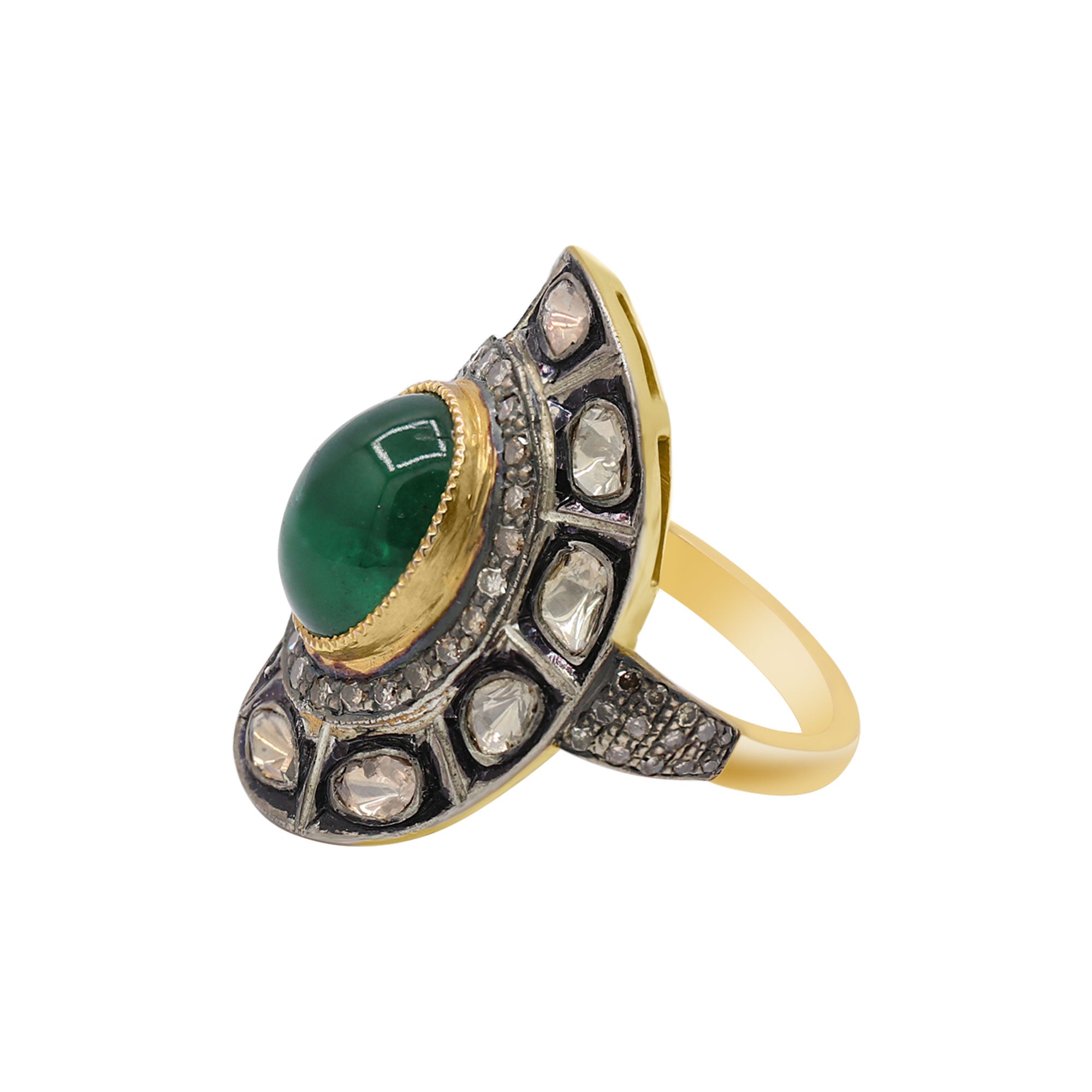 Item Type: Emerald and Polki Diamond 925 Silver Ring
