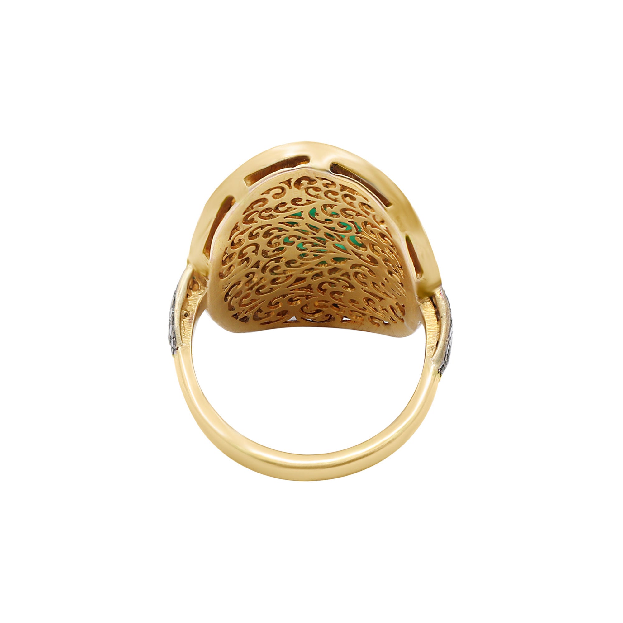 Natural Emerald Gemstone and Polki Diamond 925 Sterling Silver Gold Plated Ring