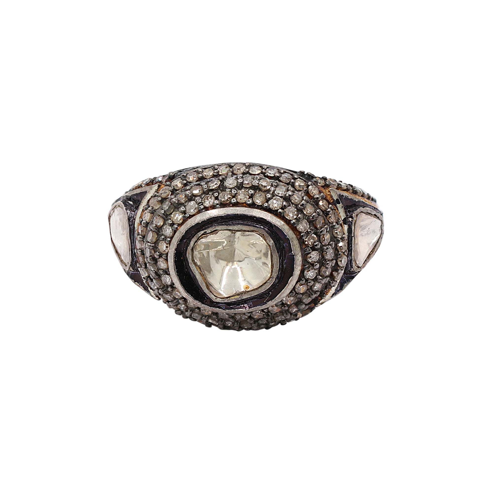Natural Polki Diamond 925 Sterling Silver Gold Plated Ring