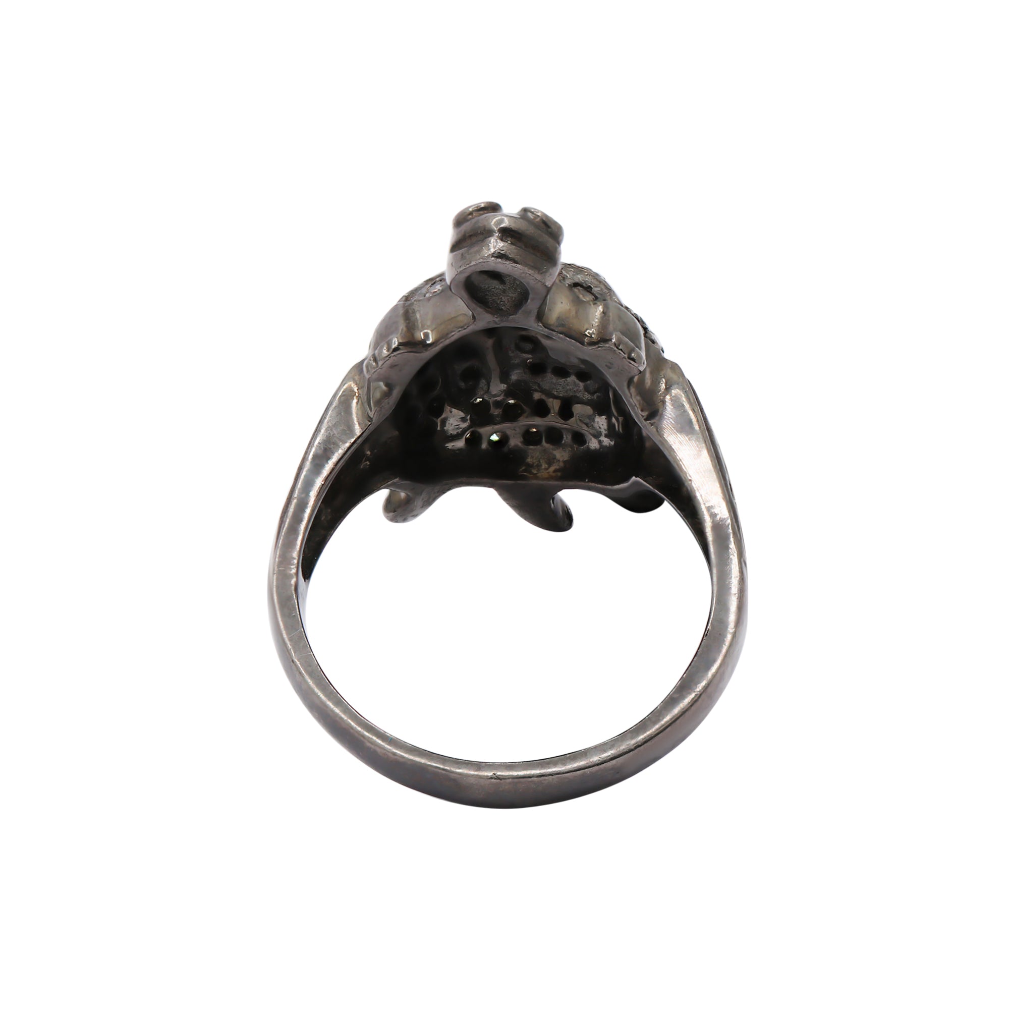 Turtle 925 Sterling Silver Designer Diamond Black Rhodium Plated Ring