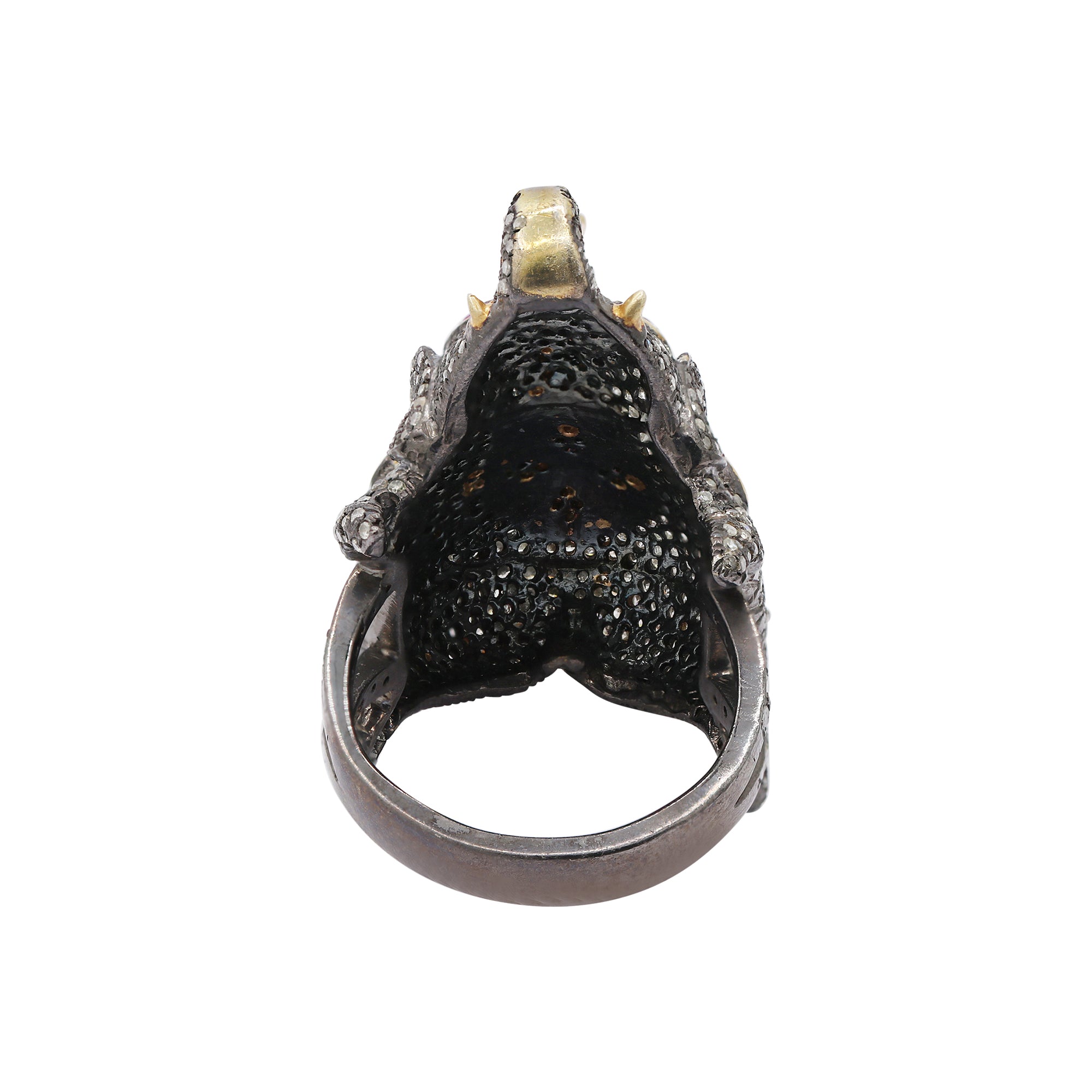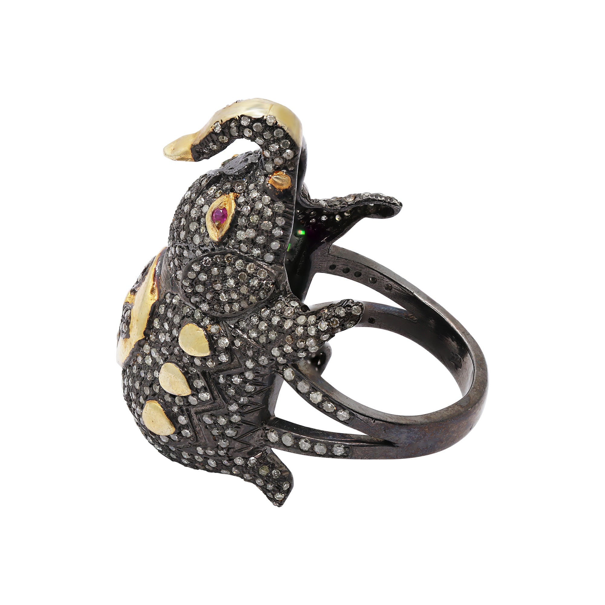 Ruby Gemstone and Diamond 925 Sterling Silver Black Rhodium Elephant Ring