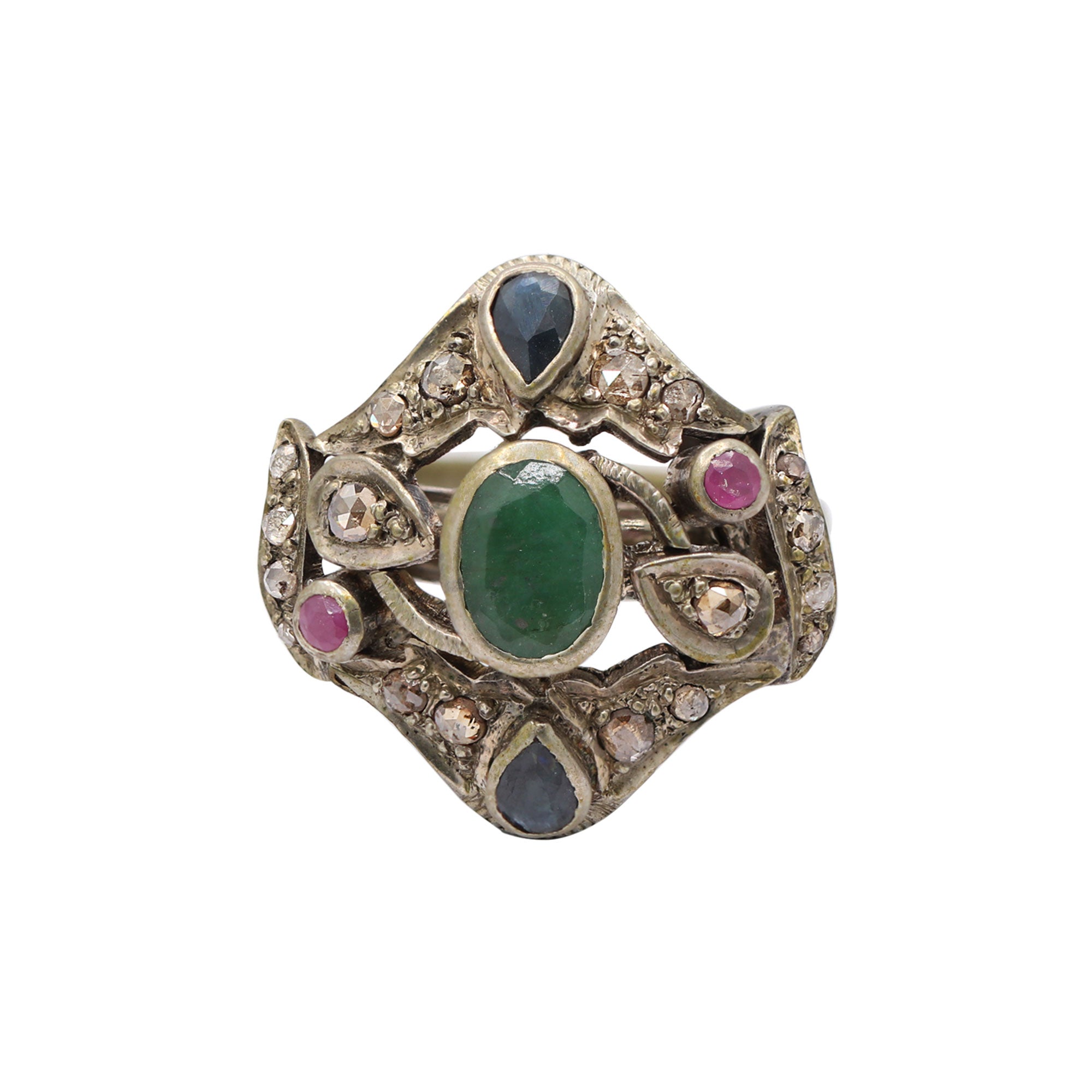Item Type: Emerald Blue Sapphire Ruby and Diamond 925 Silver Ring