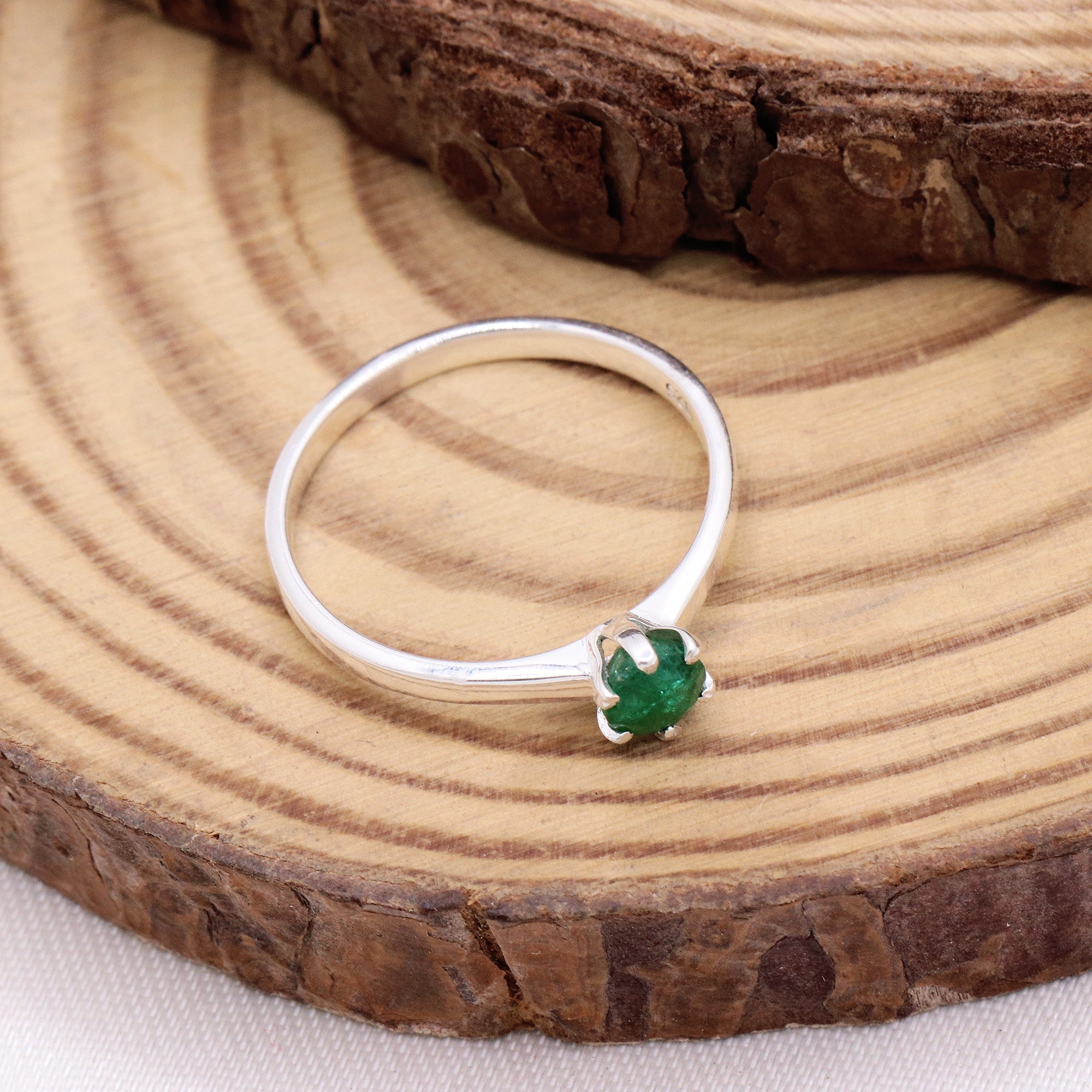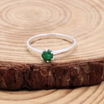 A classic Emerald Sterling Silver Ring featuring a natural green gemstone in a timeless solitaire design. The round-cut emerald is prong-set to highlight its vibrant color, making this ring perfect for everyday elegance or meaningful gifting.