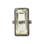 Rectangle Cut Green Amethyst and Diamond Designer Black Rhodium Ring
