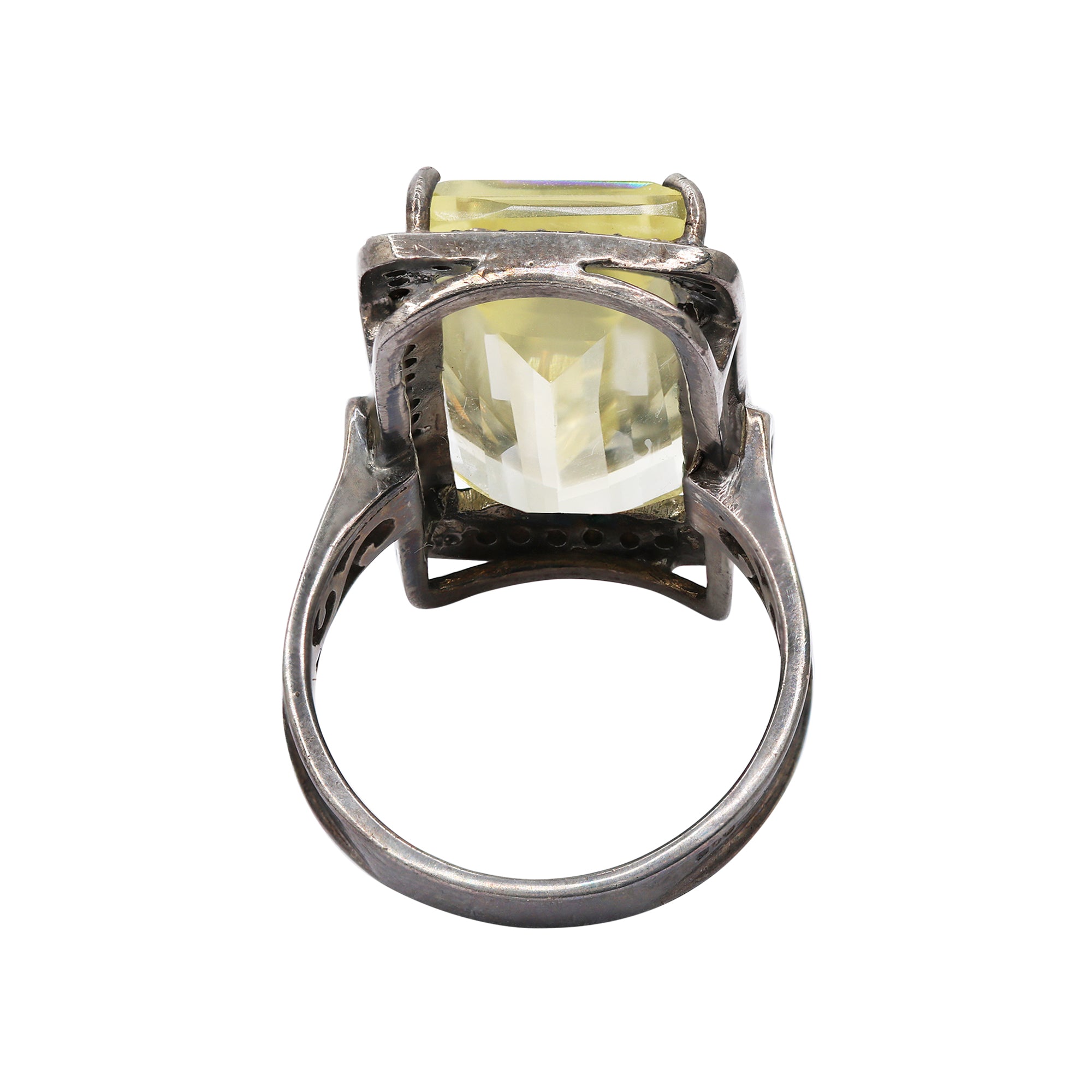 Item Type: Green Amethyst and Diamond Silver Ring