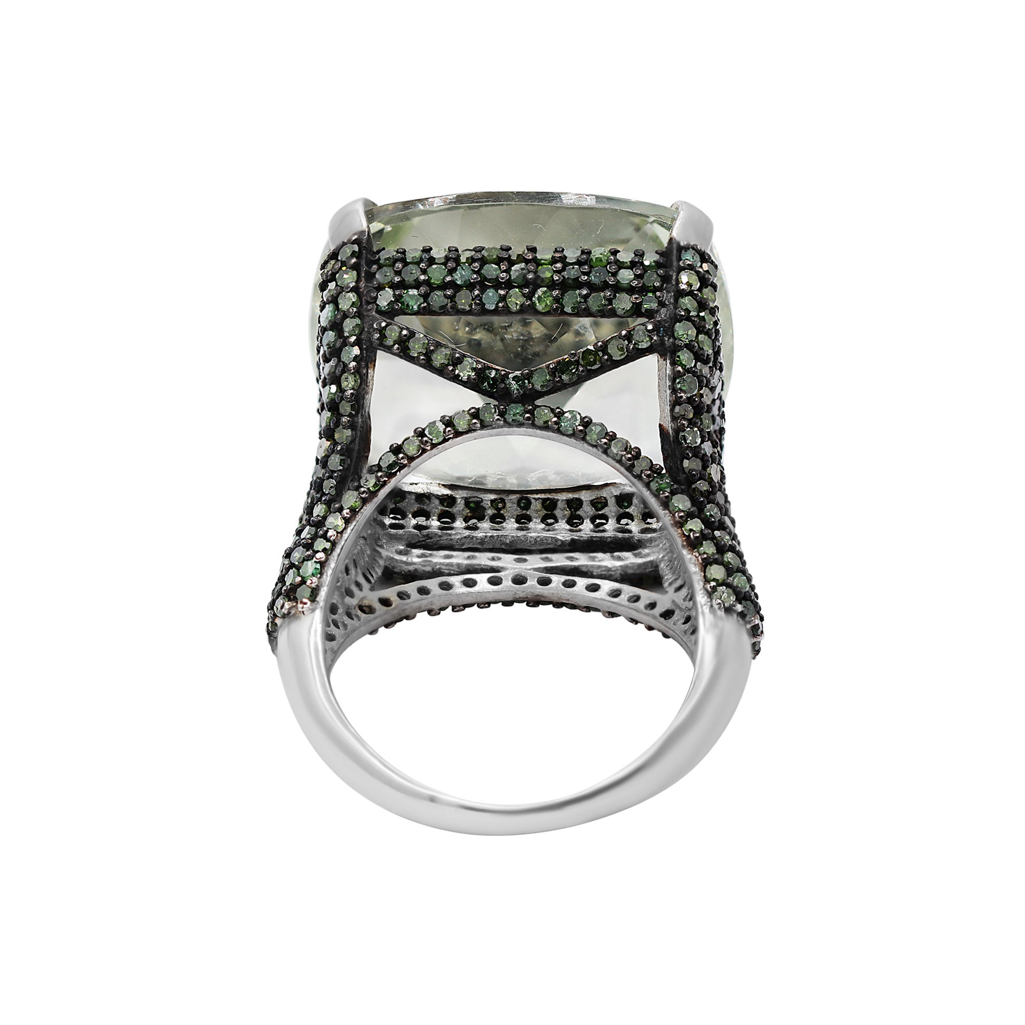 Item Type: Green Amethyst and Green Diamond Silver Ring