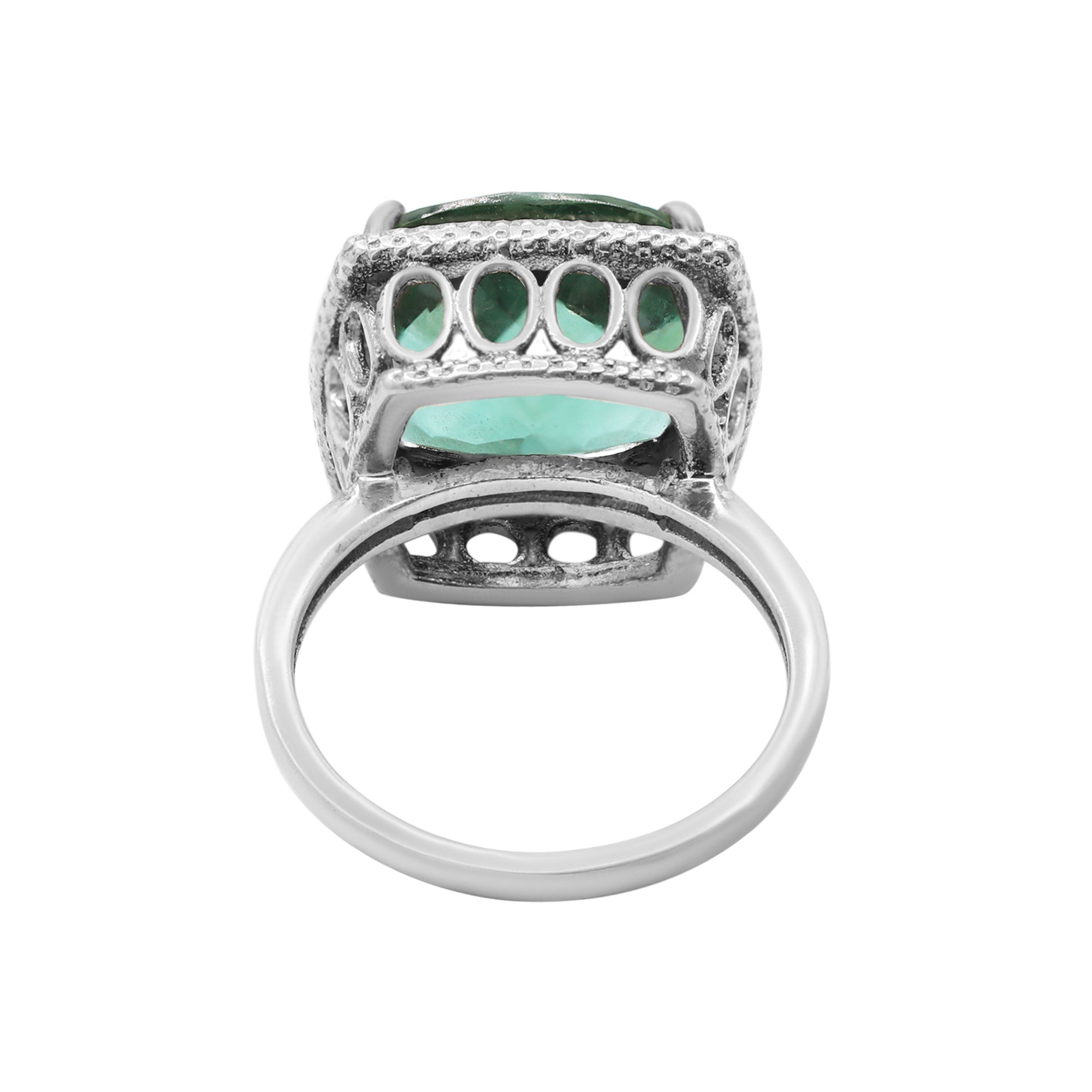 Natural Green Tourmaline Square Cut Gemstone 925 Silver Ring