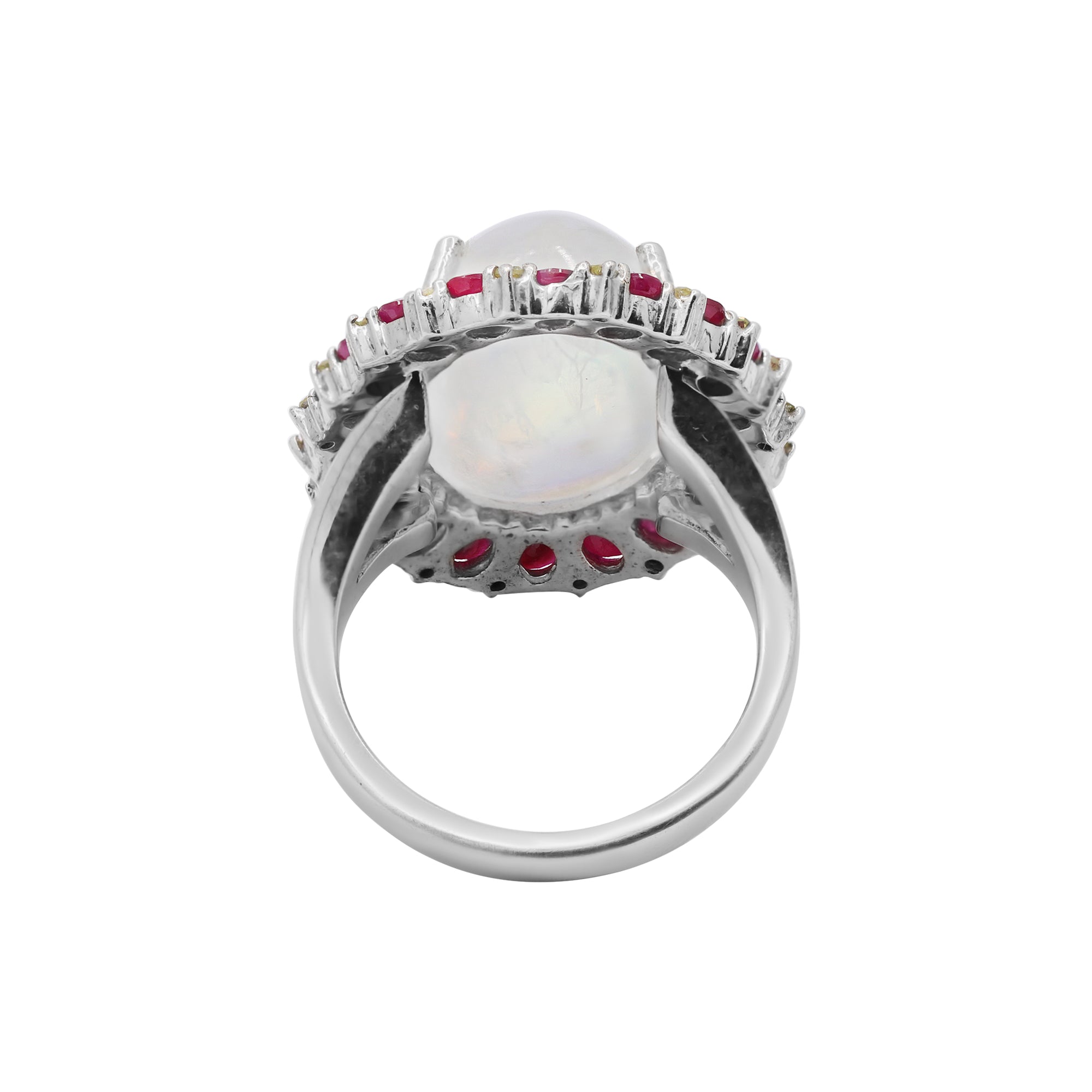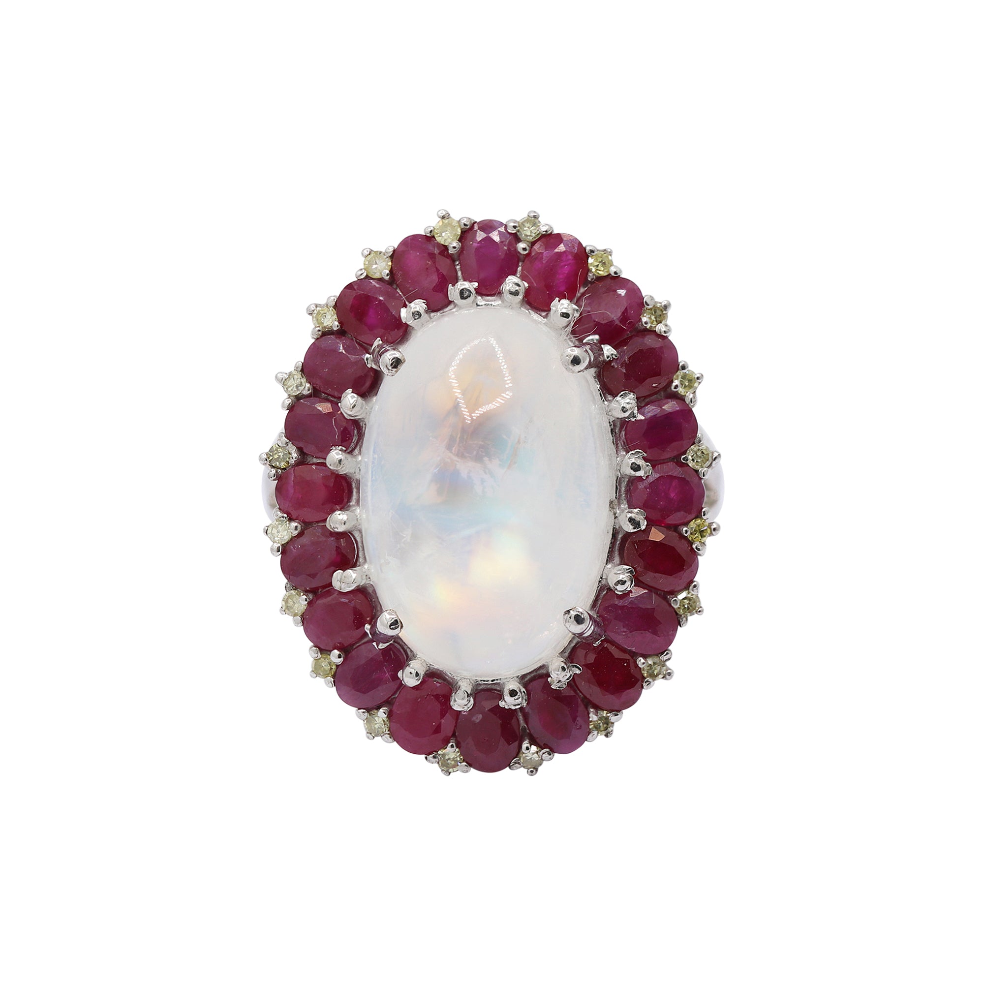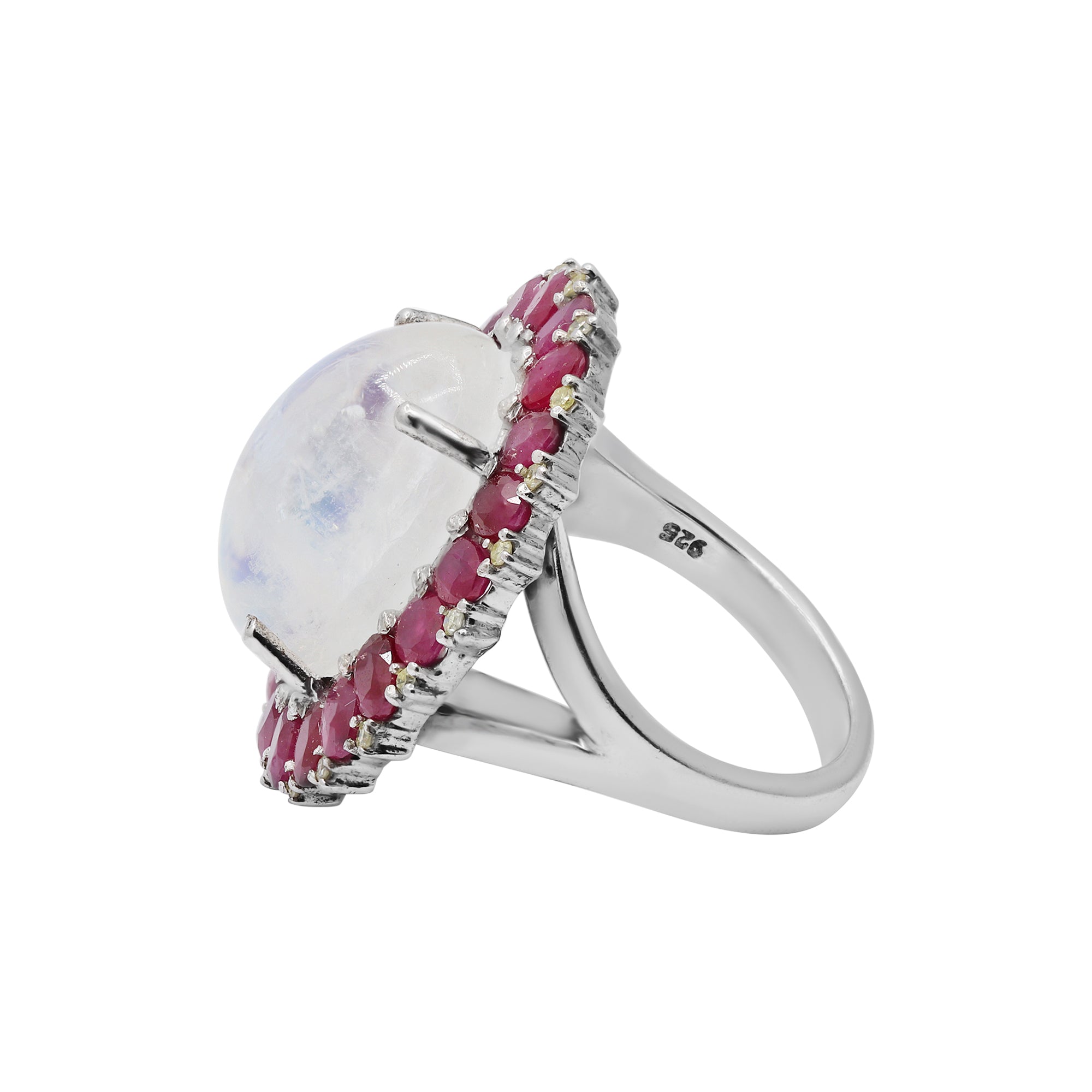Item Type: 925 Moonstone, Ruby and Diamond Silver Ring