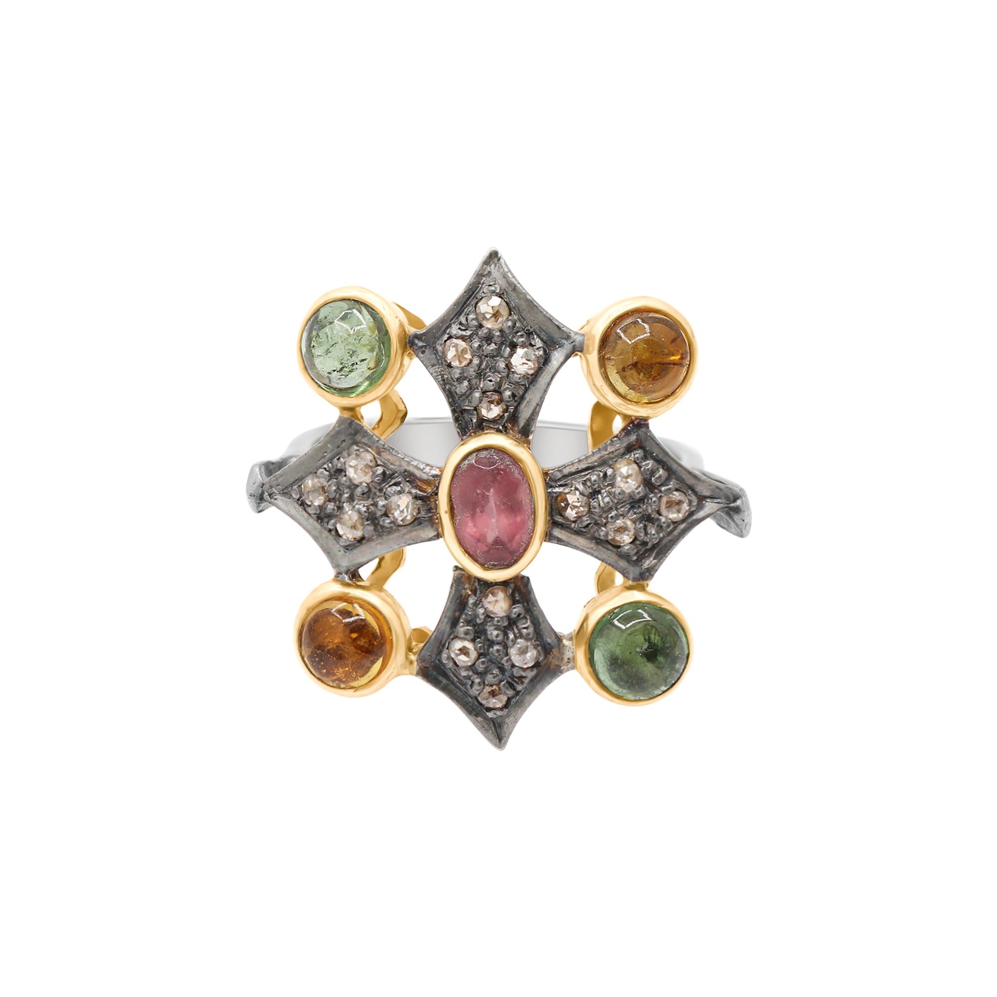 Item Type: Natural Multi Sapphire and Diamond 925 Silver Gold Plated Ring