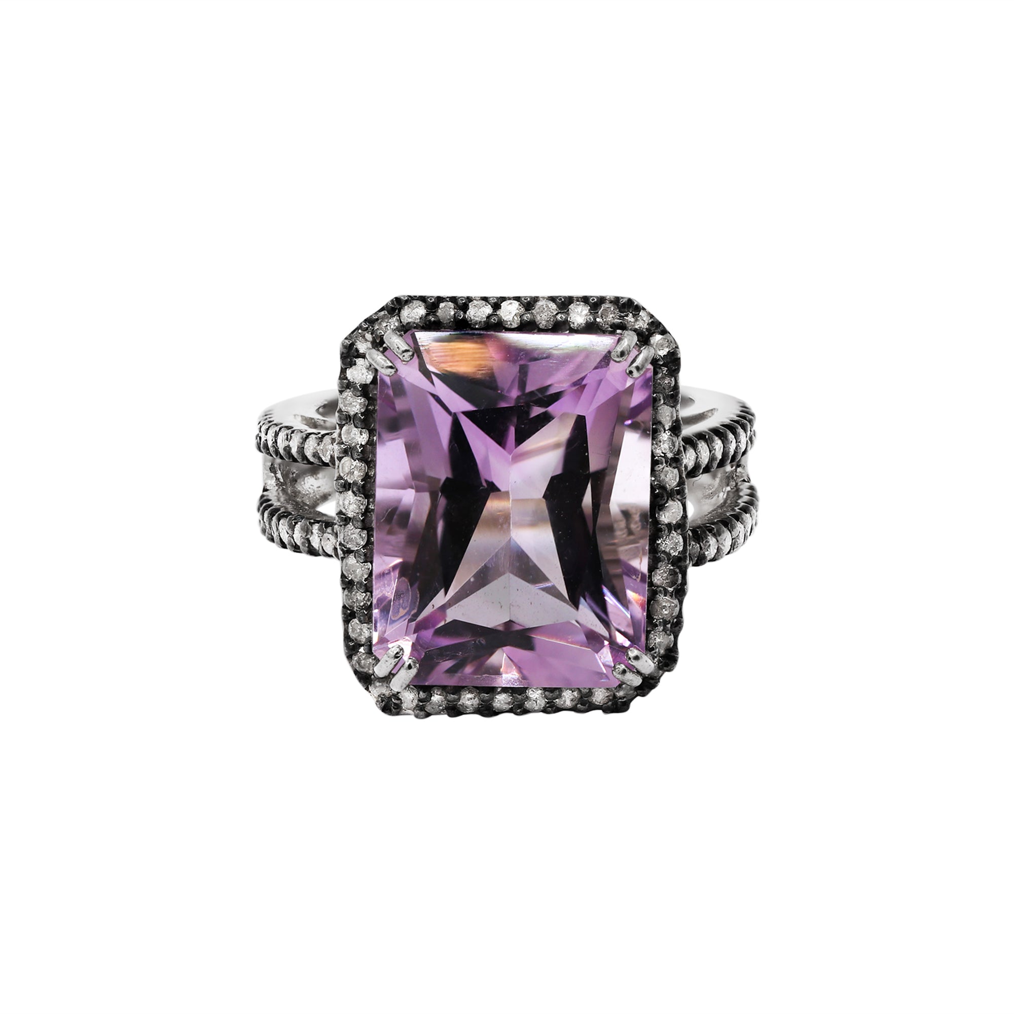 Natural Amethyst Gemstone and Diamond 925 Sterling Silver Ring