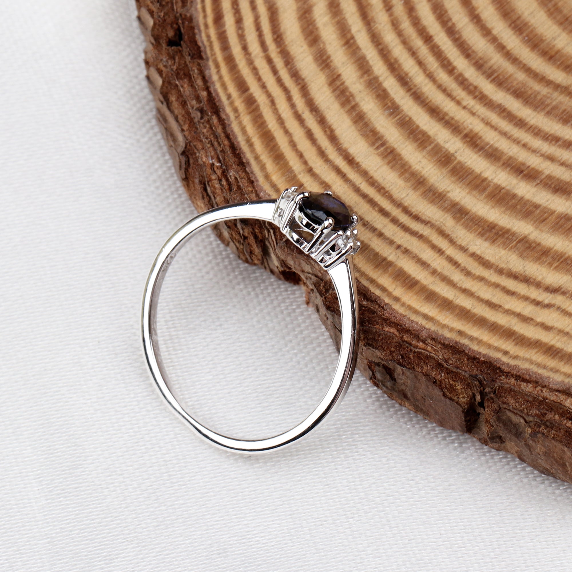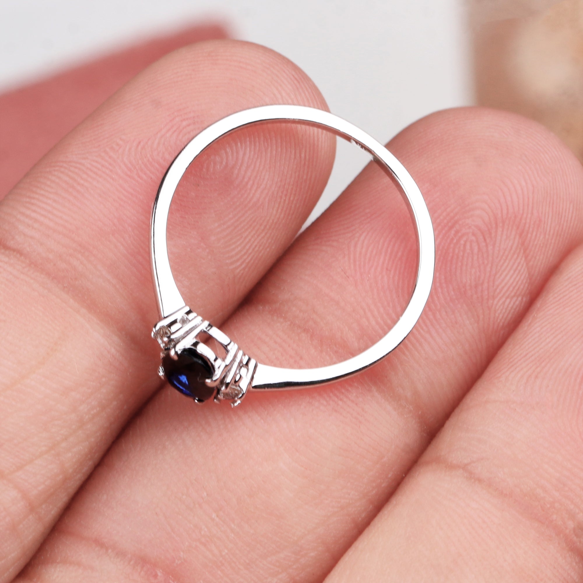 Natural Blue Sapphire & CZ Ring 925 Sterling Silver Gemstone Ring Handmade Jewelry