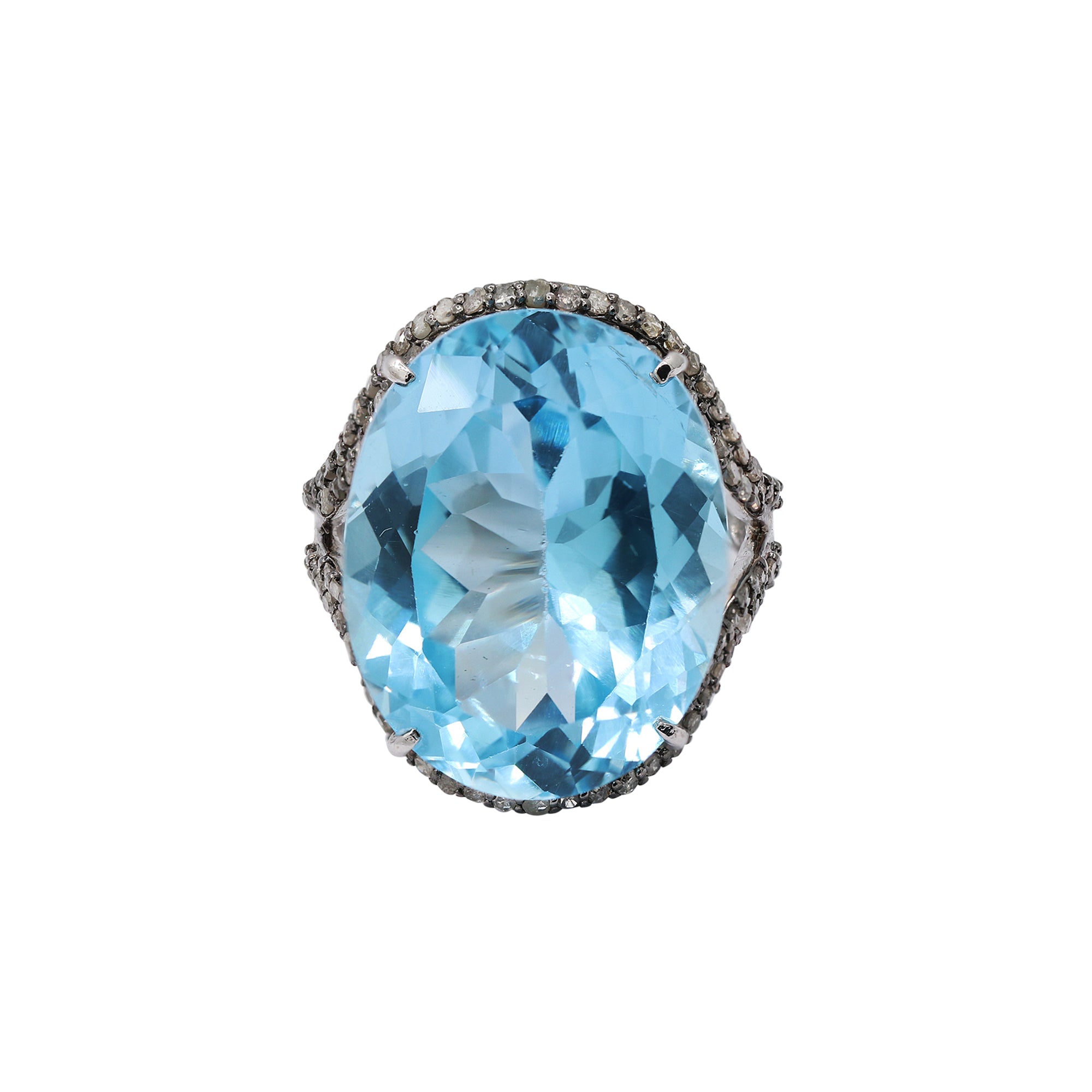 Item Type: Blue Topaz and Diamond Silver Ring