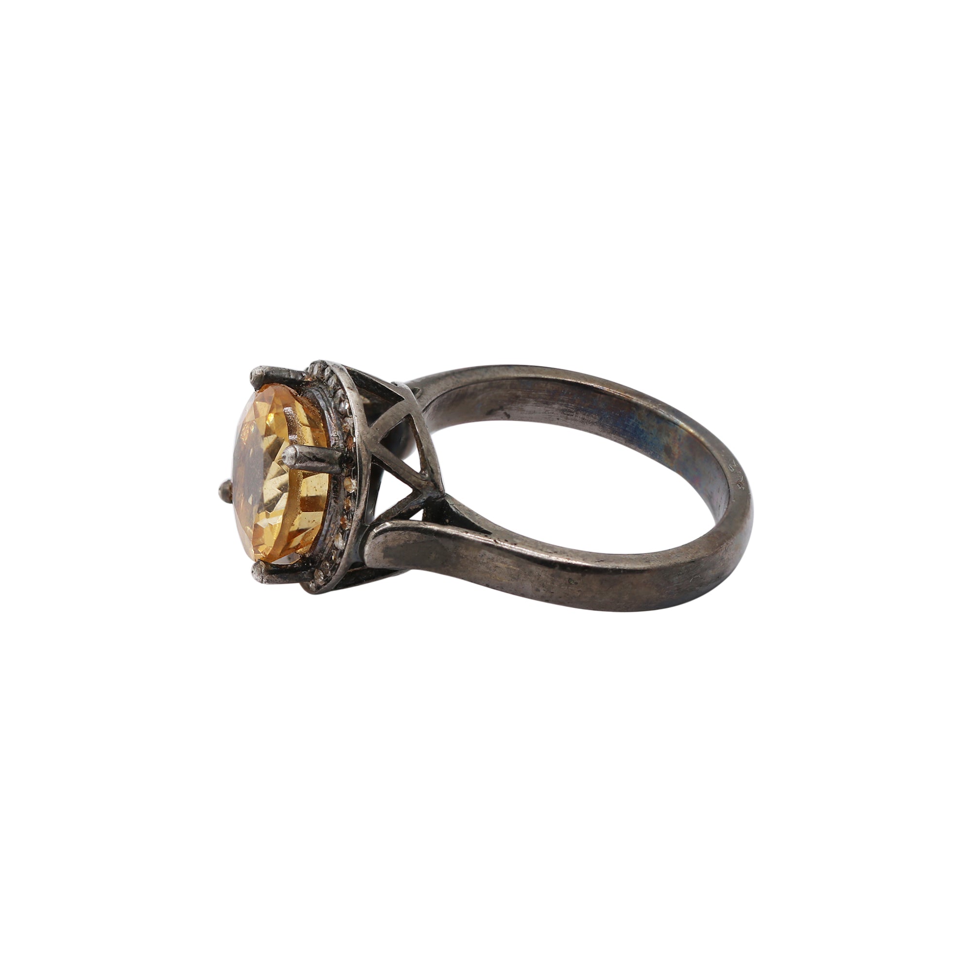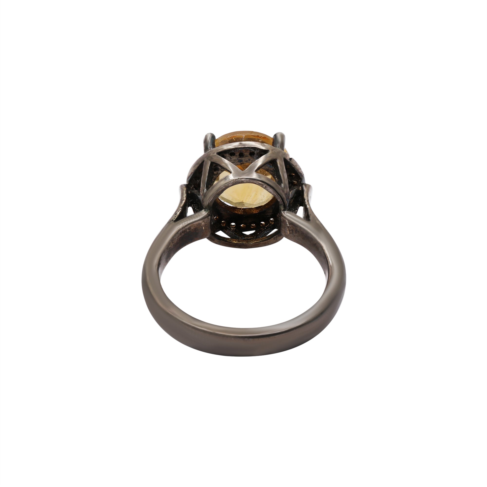 Natural Citrine and Diamond 925 Silver Handmade Black Rhodium Plated Ring