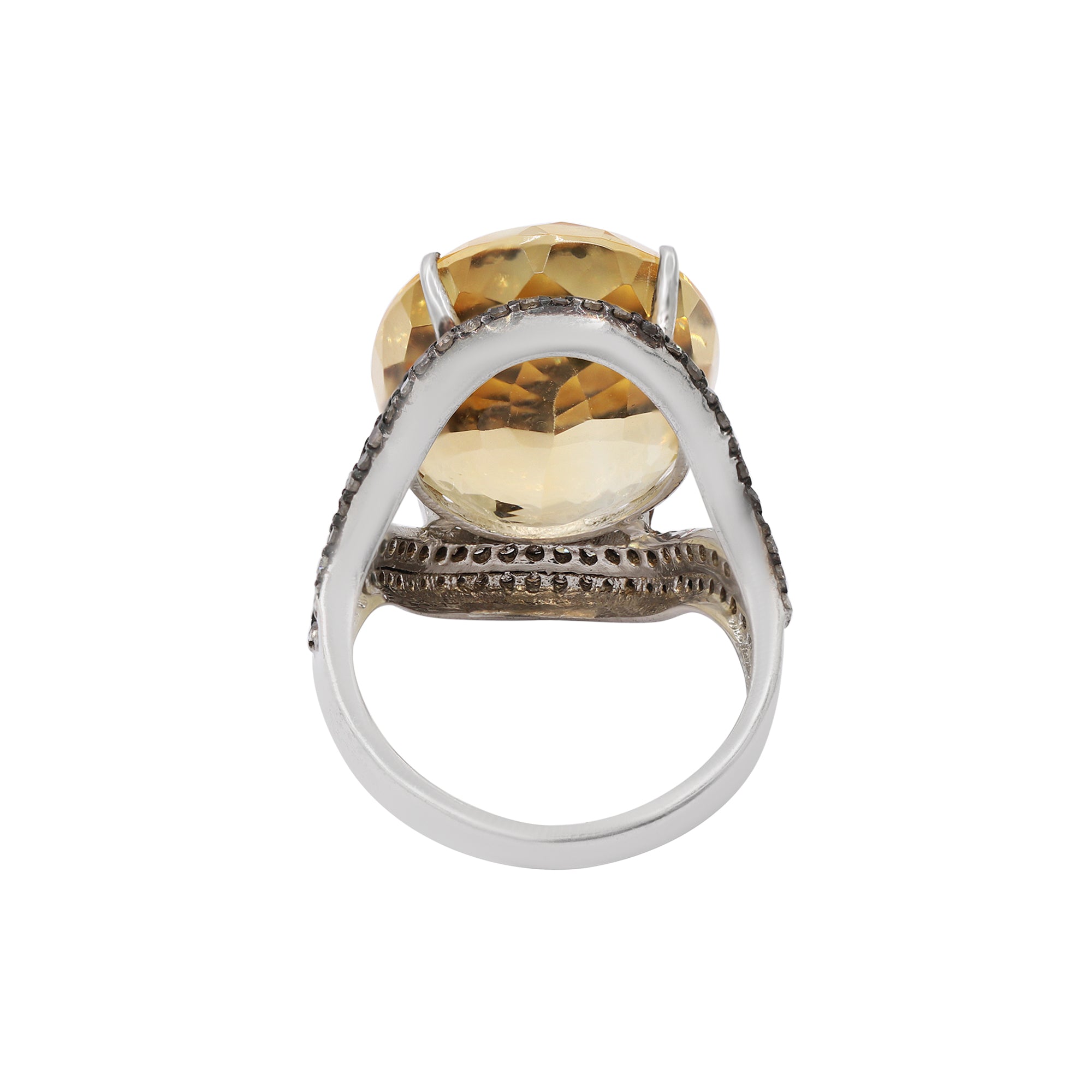 Natural Citrine Gemstone and Diamond 925 Sterling Silver Ring