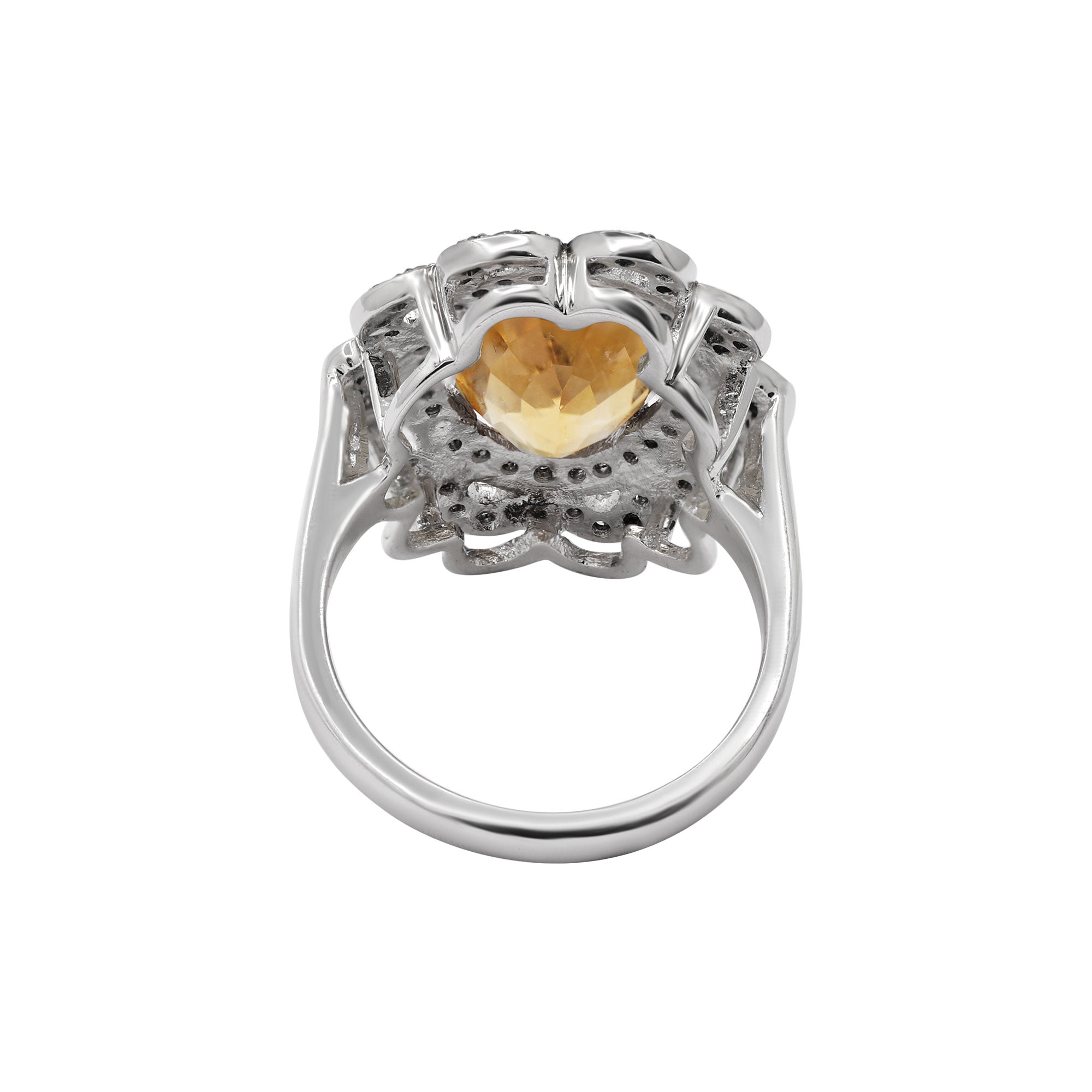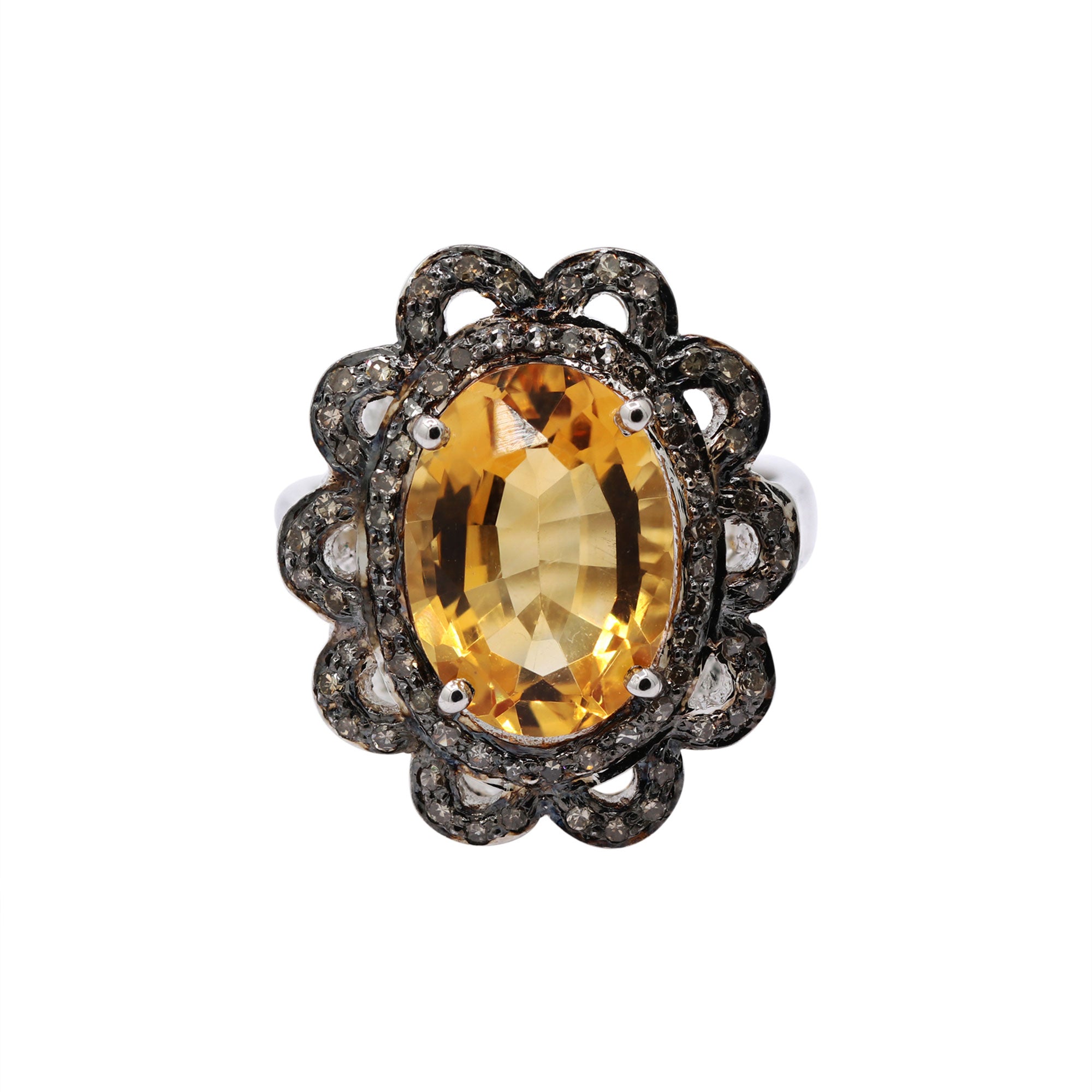 Natural Citrine Oval Cut Gemstone & Diamond 925 Sterling Silver Ring