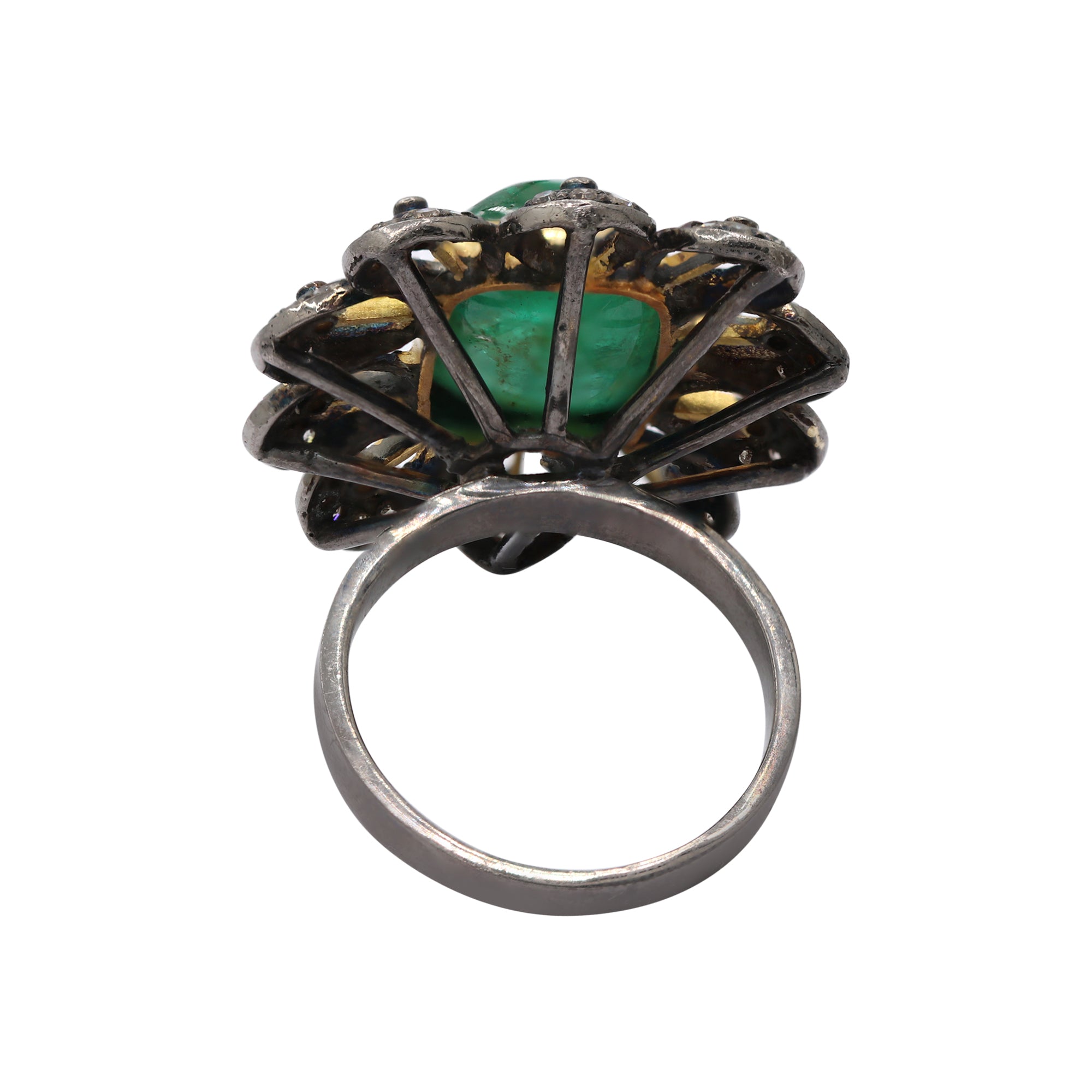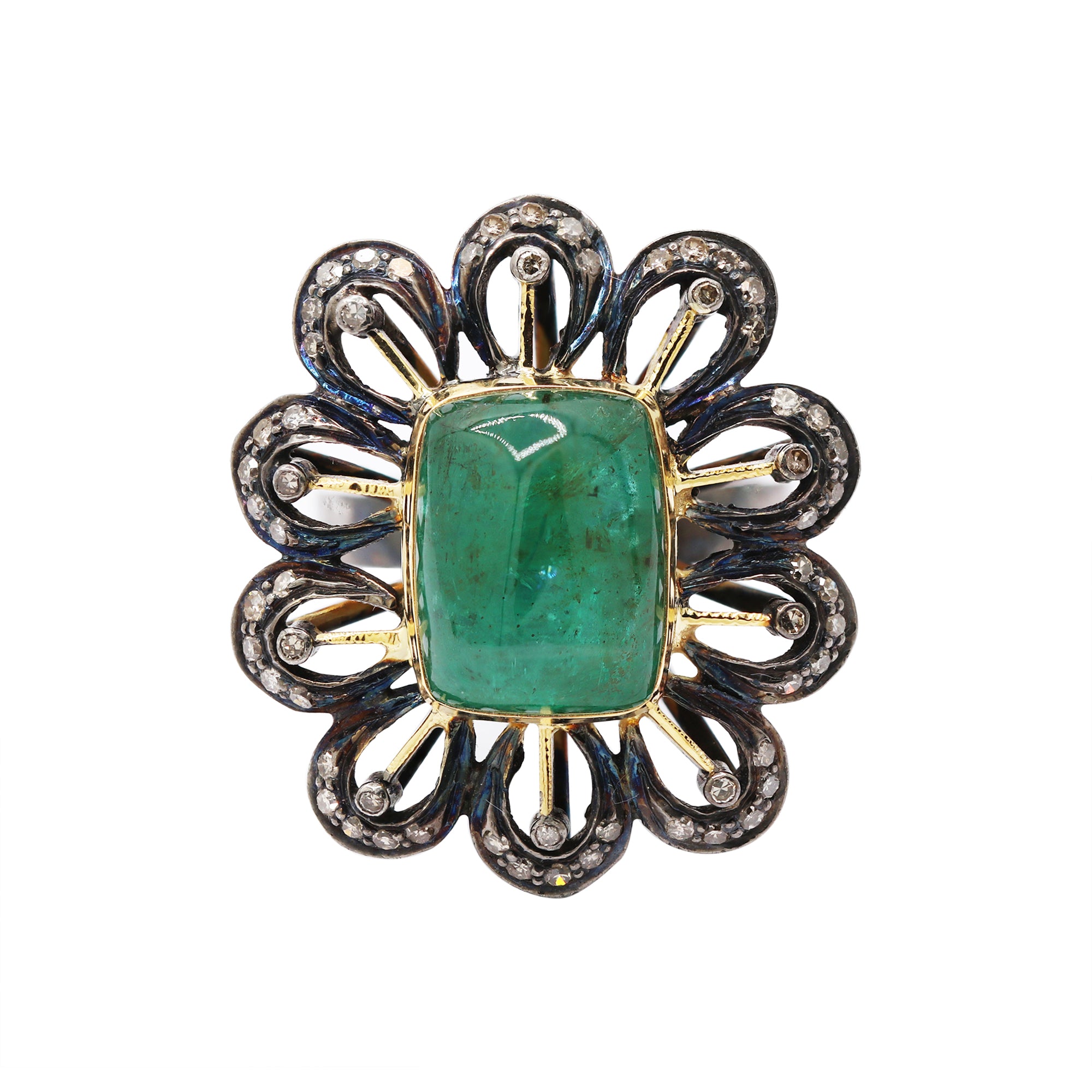 Natural Emerald Gemstone and Diamond Gold Plated 925 Sterling Silver Ring