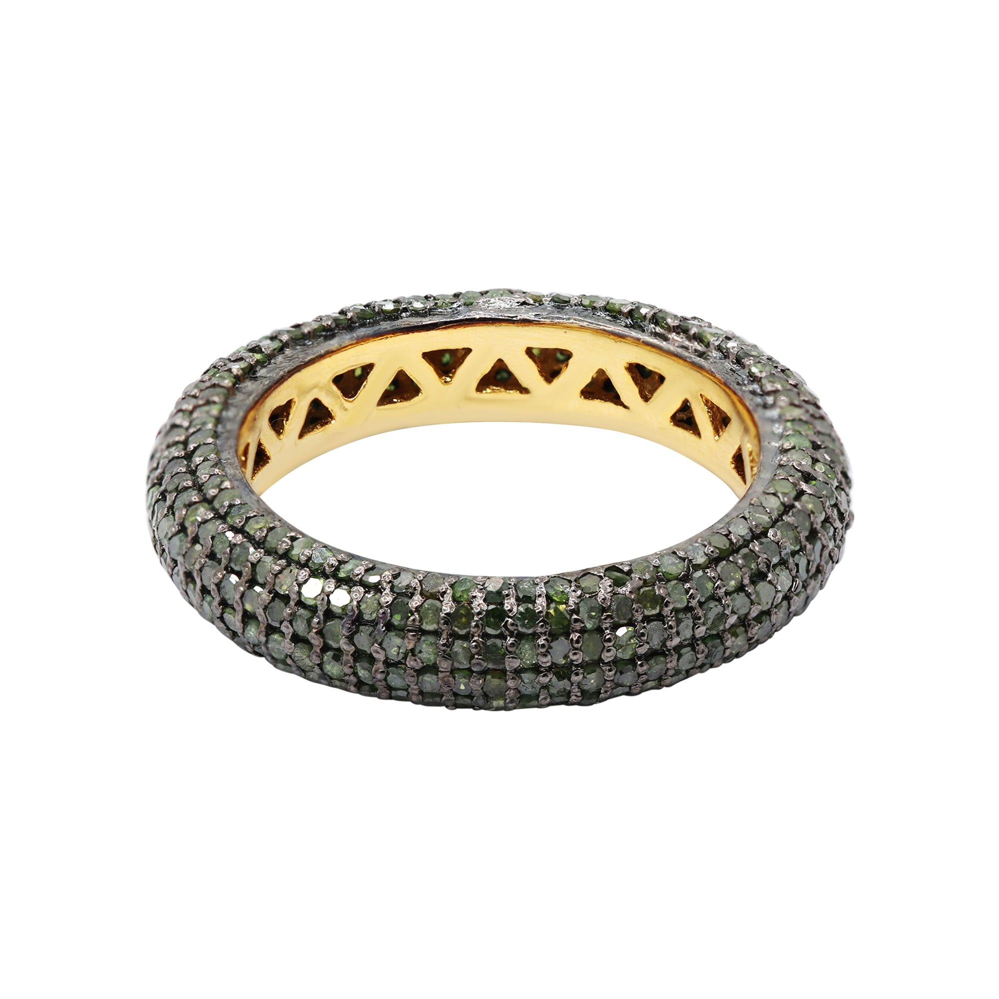 Natural Green Diamond 925 Sterling Silver Gold Plated Band Ring
