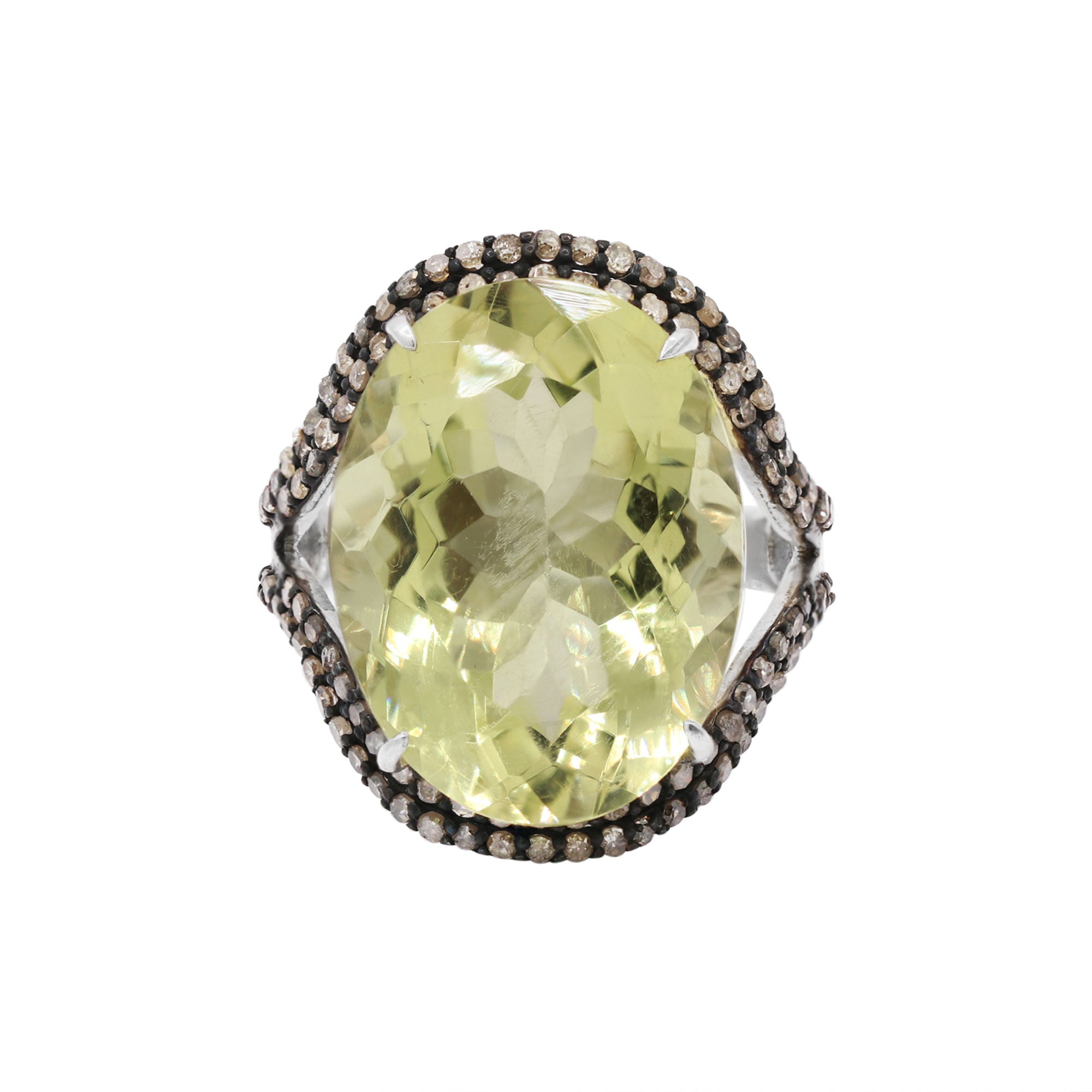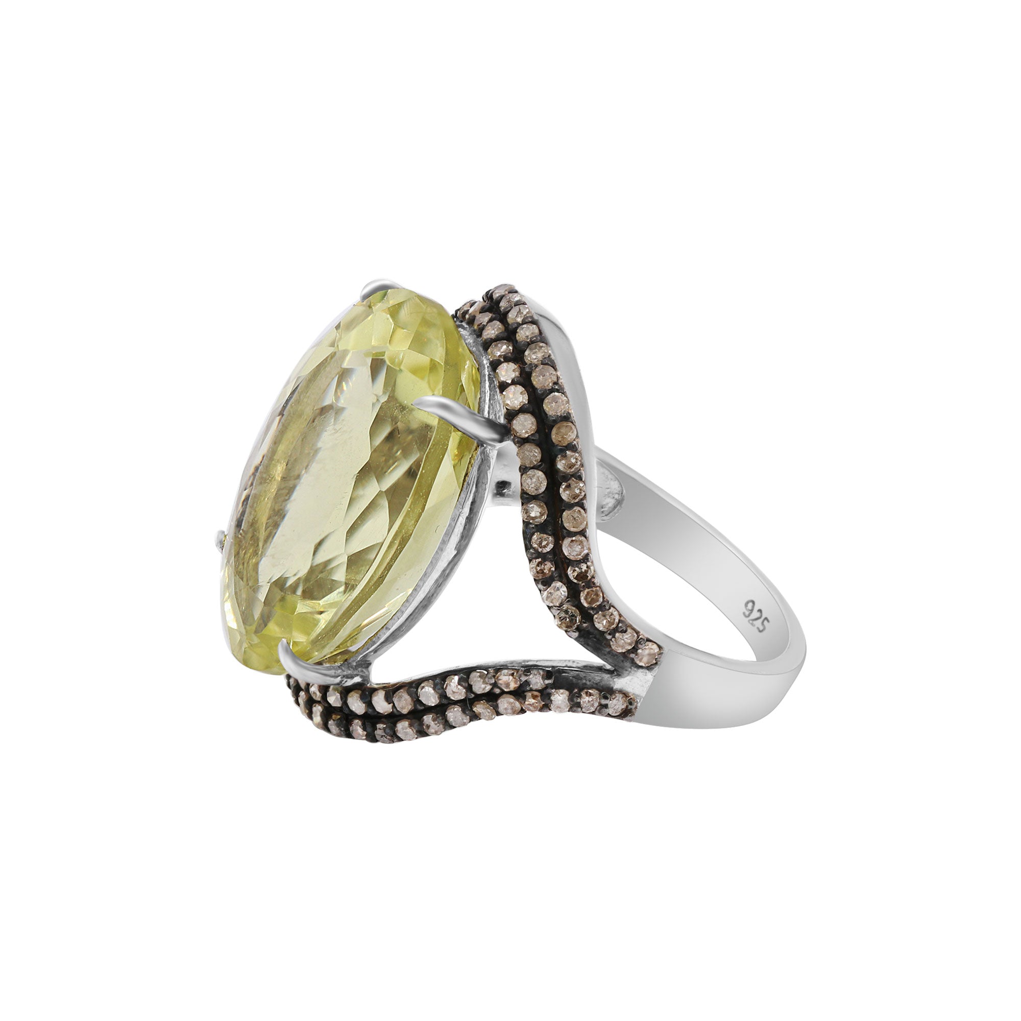 Item Type: Lemon Quartz and Diamond 925 Silver Ring