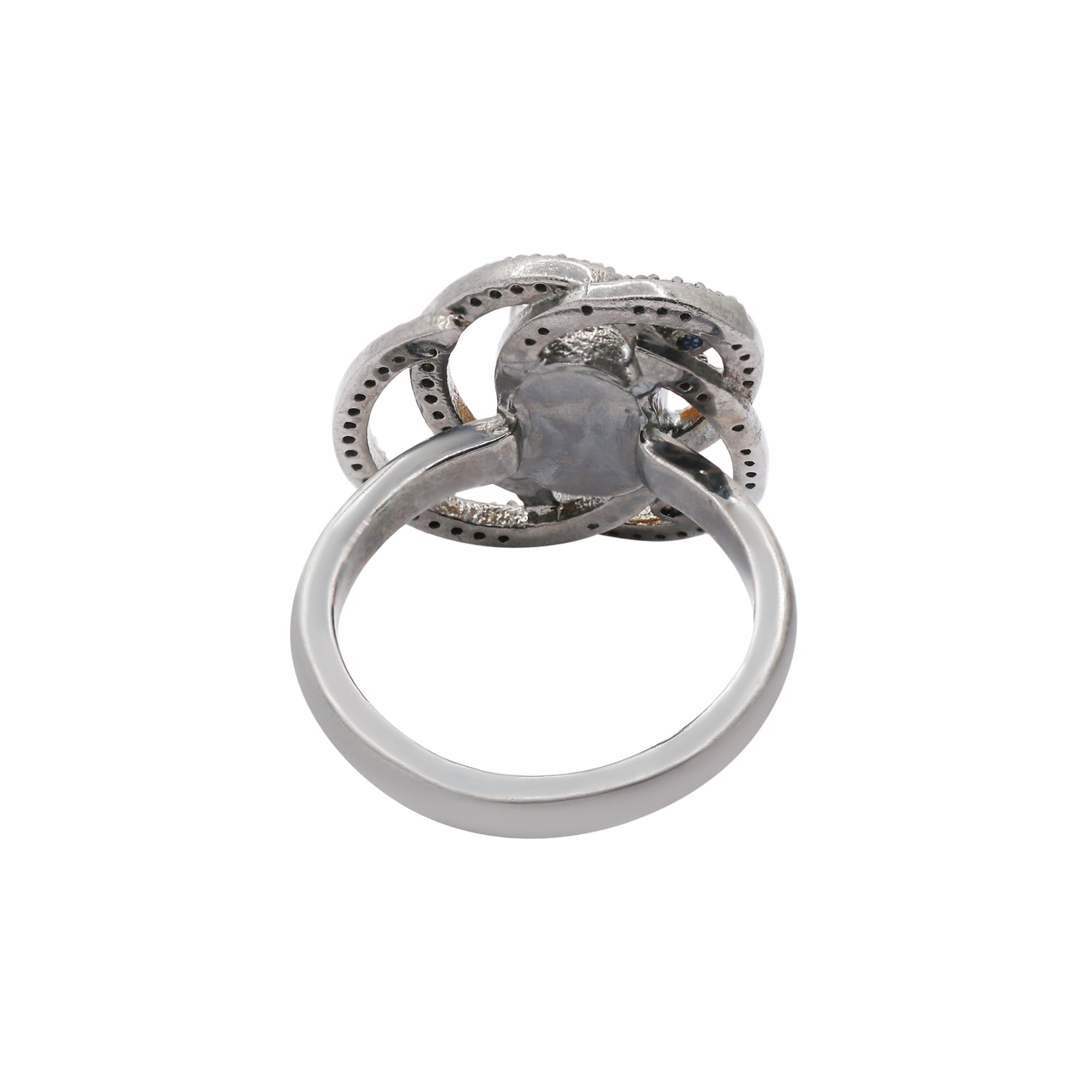 Natural Opal, Sapphire Gemstone and Diamond 925 Sterling Silver Black Rhodium Ring